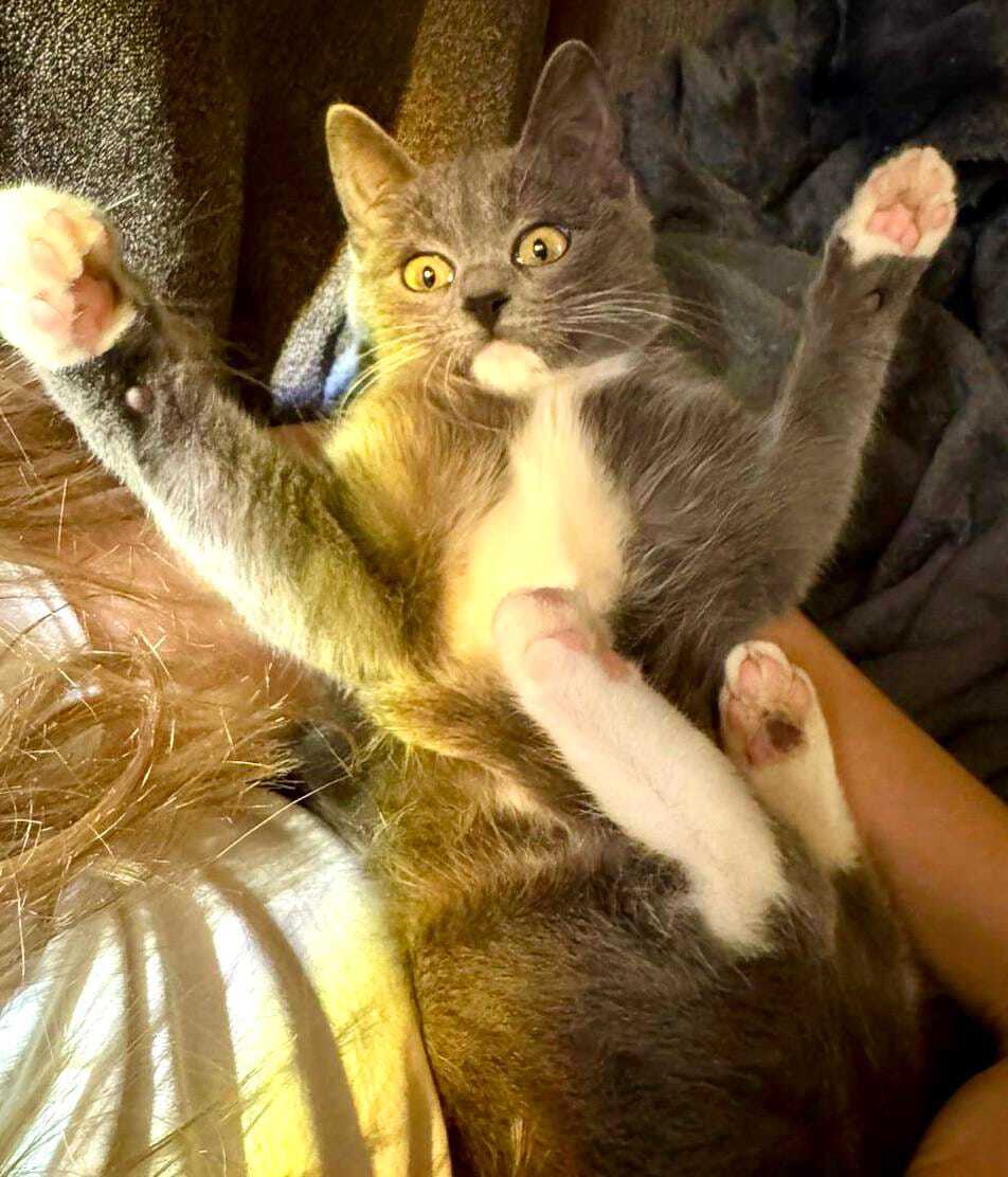 Она любит обниматься: контактный добродушный ребёнок. Игривая, любознательная, жизнерадостная, очень любит шуршащих и звенящих мышек. Но все игрушки бросает, если есть возможность побыть с человеком, забирается на колени и тарахтит, как маленький тракторёнок.