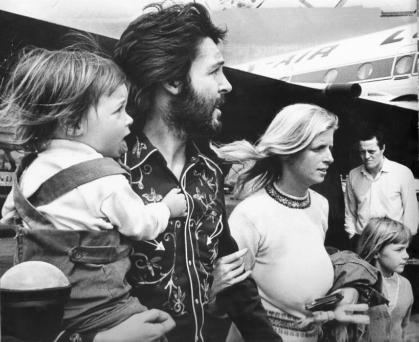 Пол Маккартни с женой Линдой и дочками Мэри и Хизер в аэропорту, 1971 год.