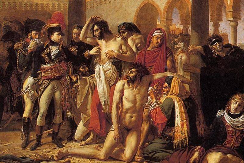 Страдания французов и их союзников во время Египетской кампании запечатлены на картине Жана-Антуана Гро "Бонапарт посещает чумной госпиталь".