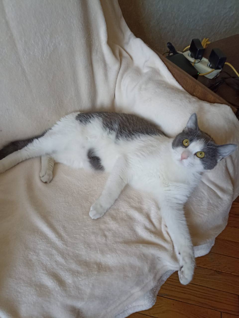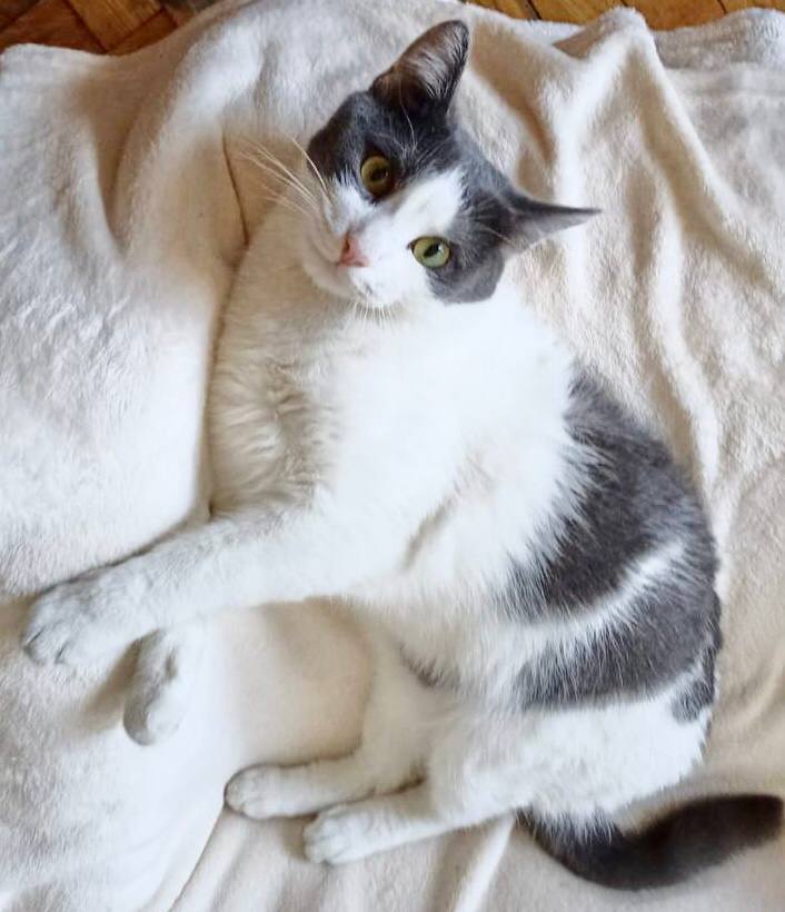 Сейчас с ним все хорошо, котик находится на передержке. Он невероятно ласковый, очень любит людей ,любит сидеть на ручках и все время мурчит.