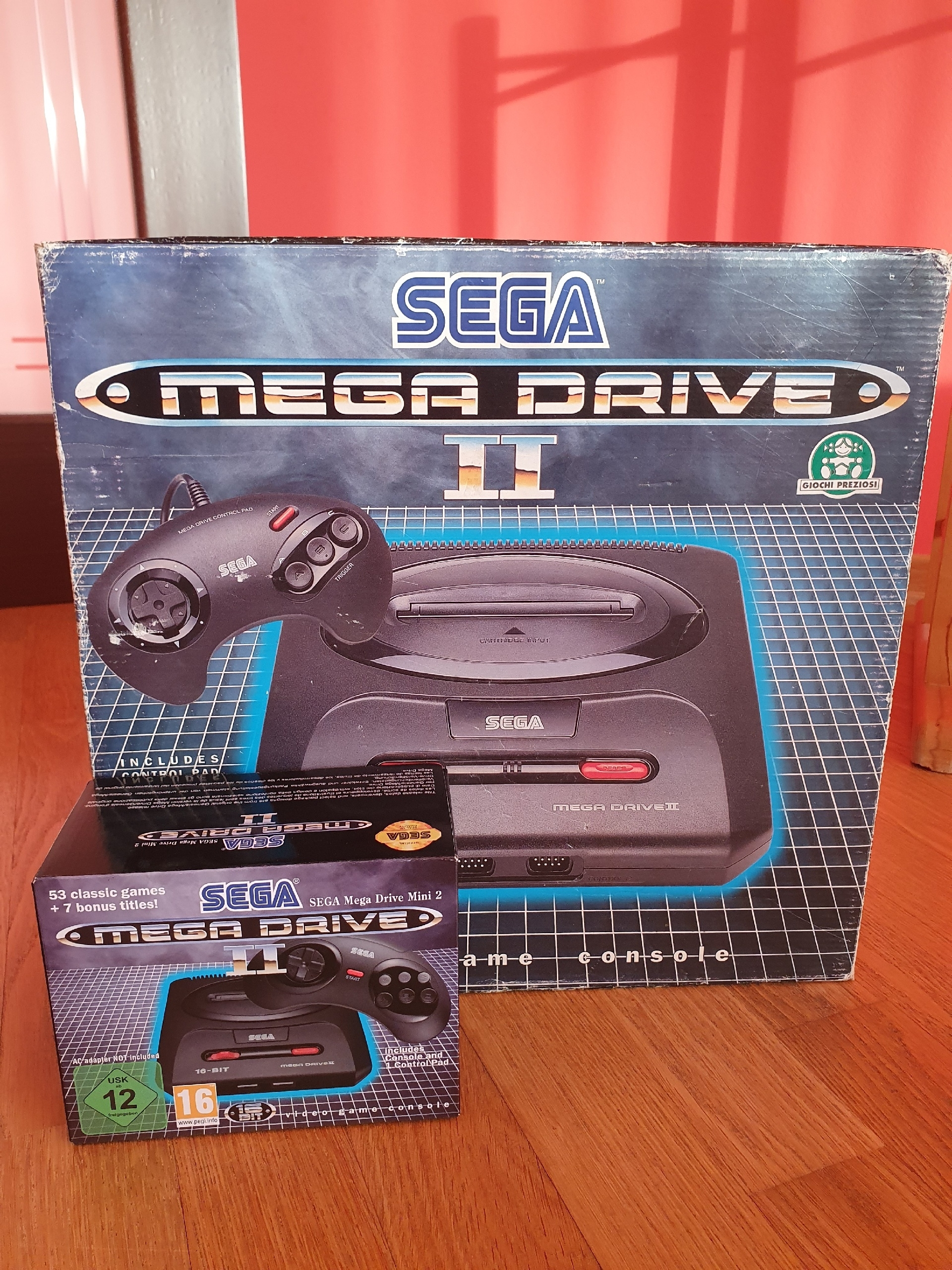 Сравнение размера оригинальной Sega mega drive 2 с mini версией