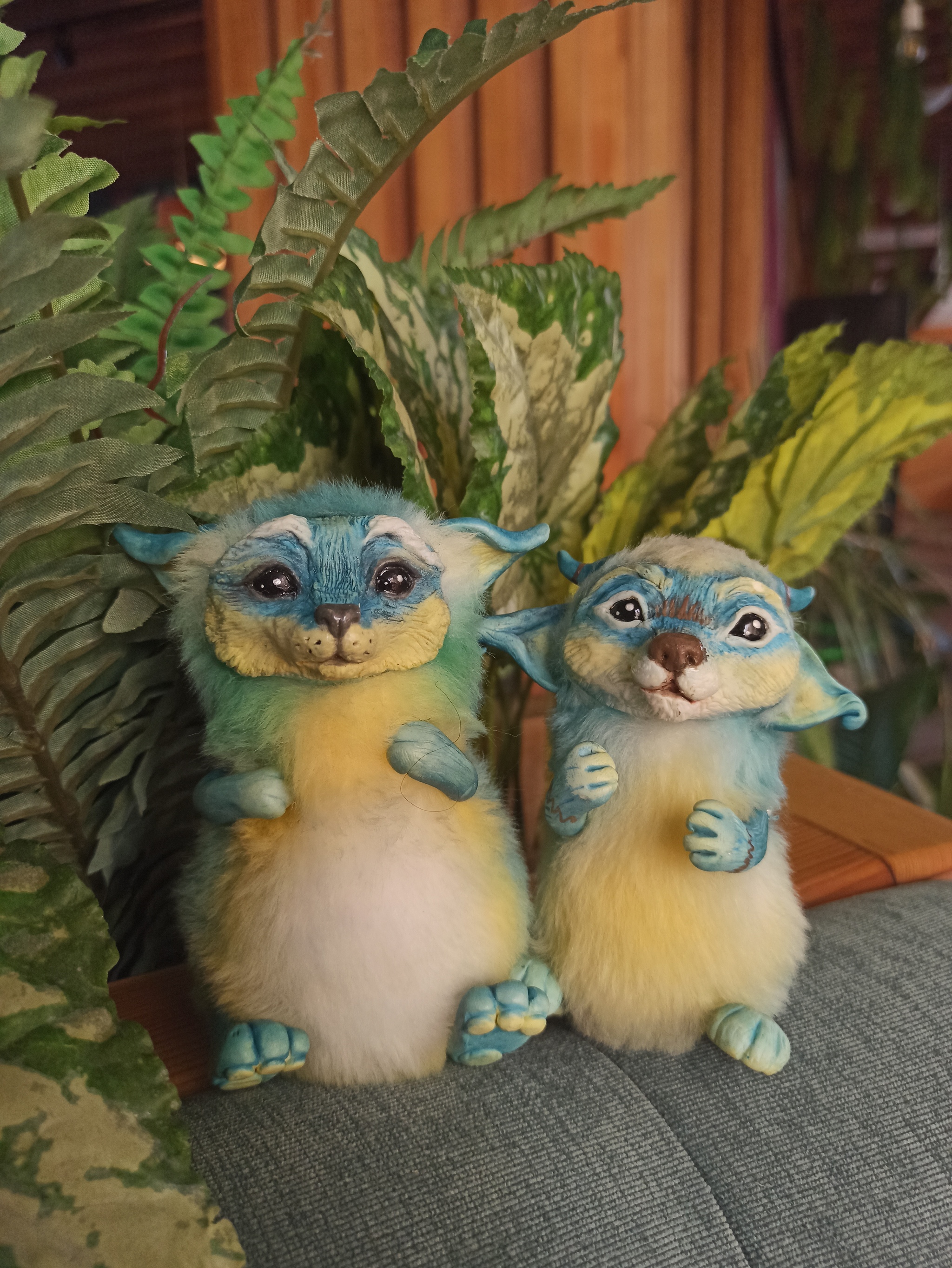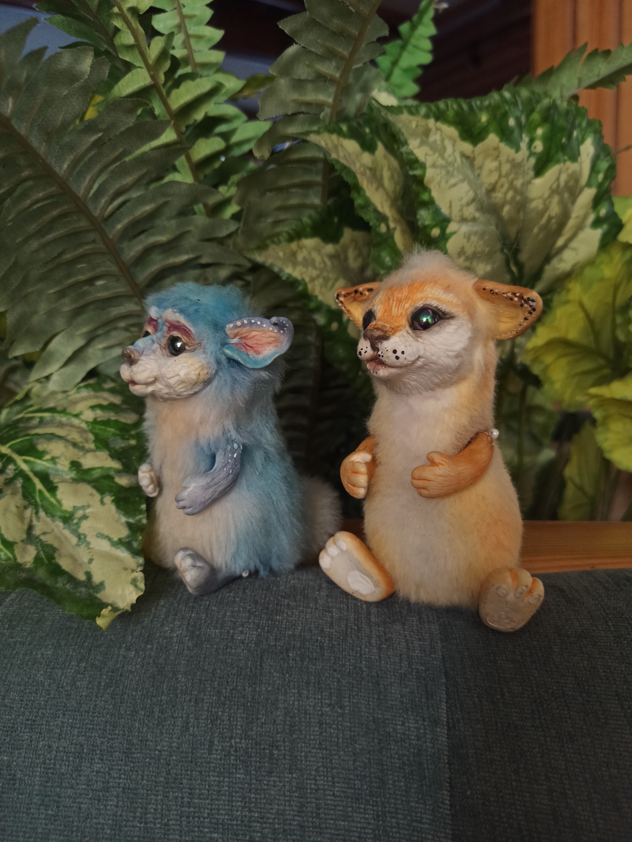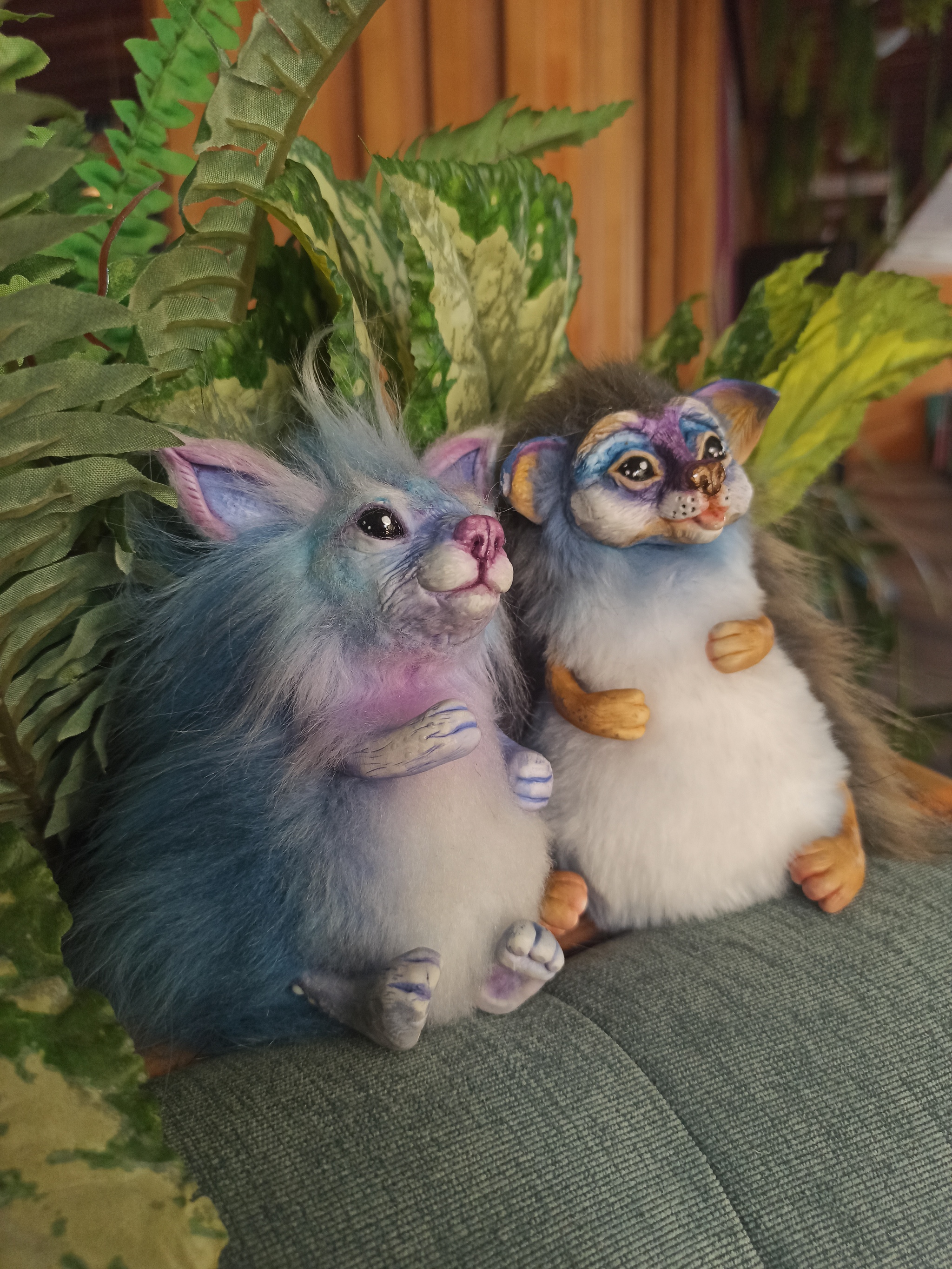 Материалы: искусственный мех, полимерная глина, синтепух, пастель, лак, бусины, нитки, ракушечный жемчуг, клей, гранулят. Рост около 10 см. Лапками двигаются.