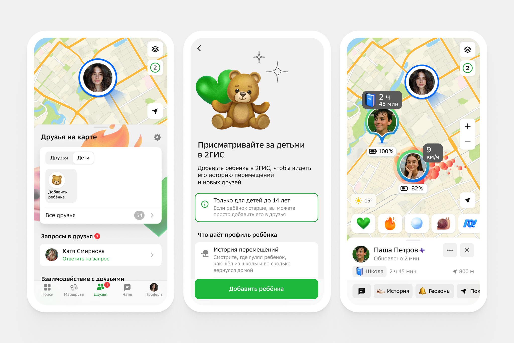 В 2ГИС появился детский профиль — это часть функции «Друзья на карте», которая помогает родителям быть спокойнее, а детям — свободнее. Можно видеть, где находится ребёнок и получать уведомления о его передвижениях.
