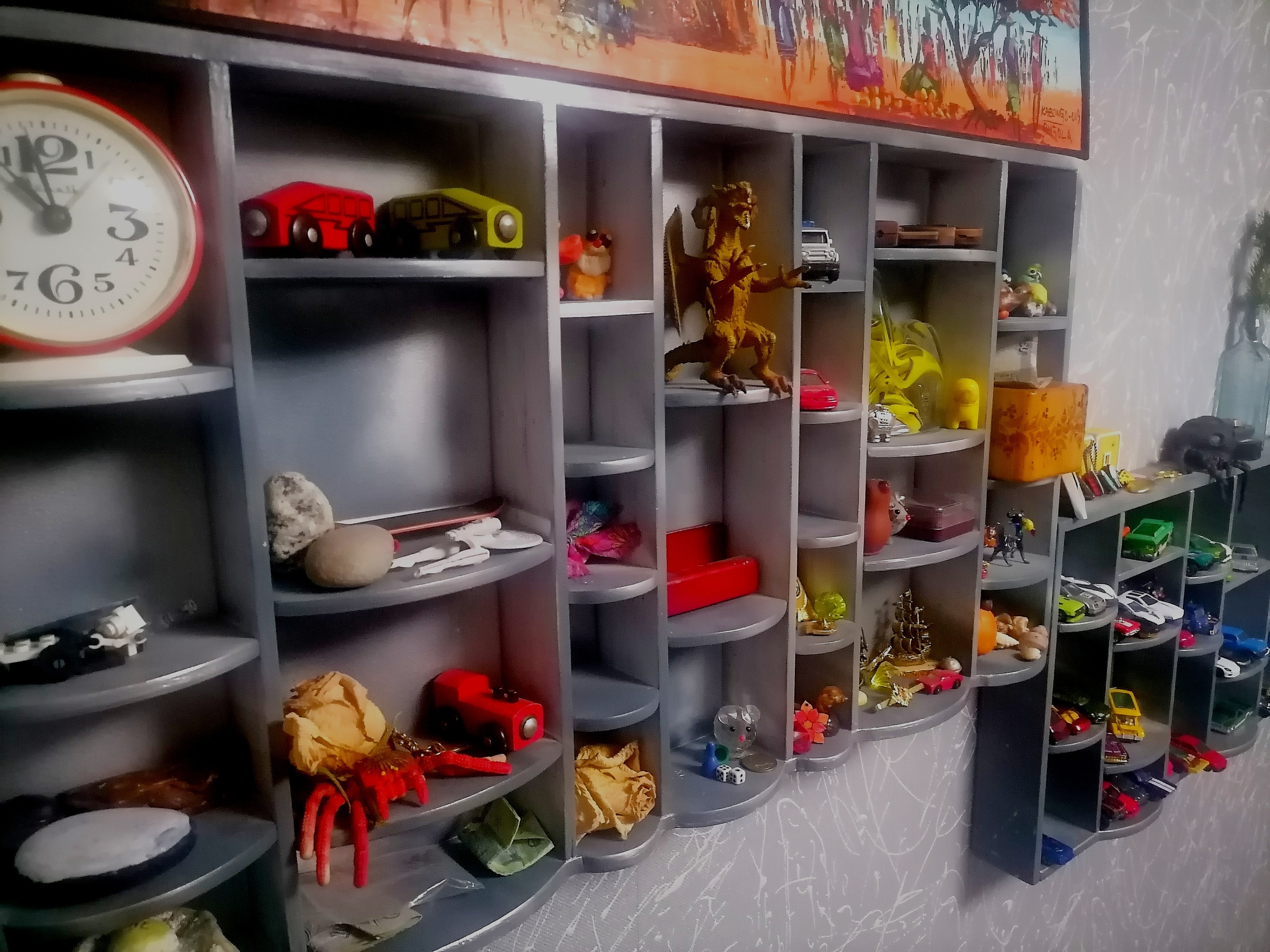 А этих полочек чуть ли не в заводских масштабах делали. Чертили, выпиливали. Видимо, монотонный ручной труд умиротворял (работа тяжёлая морально у него была). На эти полочки вообще очередь собралась. Жаль конечно, что всё закончилось трагично. Но память осталась на долгие лета.