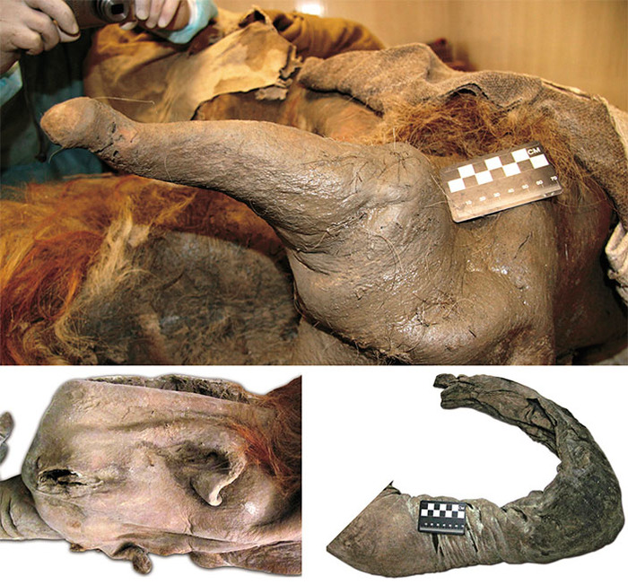 Хорошо сохранившийся хобот мамонтенка является большой редкостью для такого рода палеонтологических останков. Судя по более развитым и длинным, чем у слонов, отросткам конца хобота, мамонты обладали большей способностью к захвату и собиранию мелких растений. Это, несомненно, являлось приспособлением для быстрого насыщения пищей в условиях малокормных северных лугов. Ведь этим гигантам требовалось до 200–300 кг зеленой массы в день!
