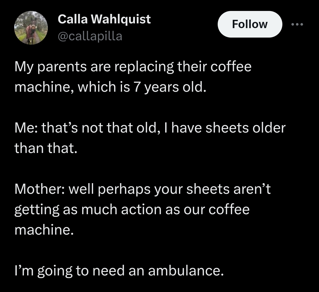 Мама: Ну, возможно, твои простыни не используются так же интенсивно, как наша кофеварка.