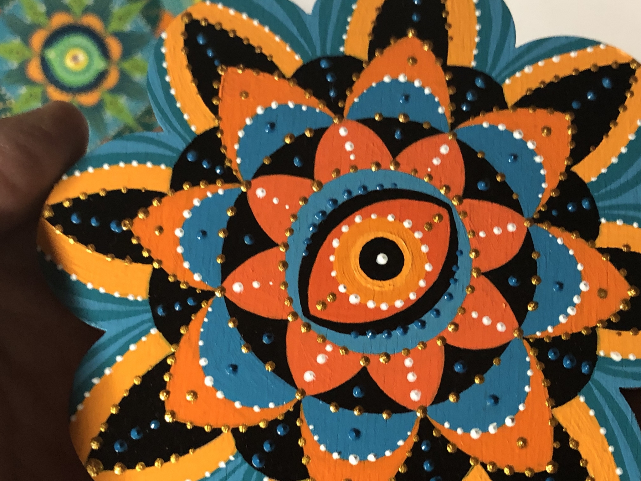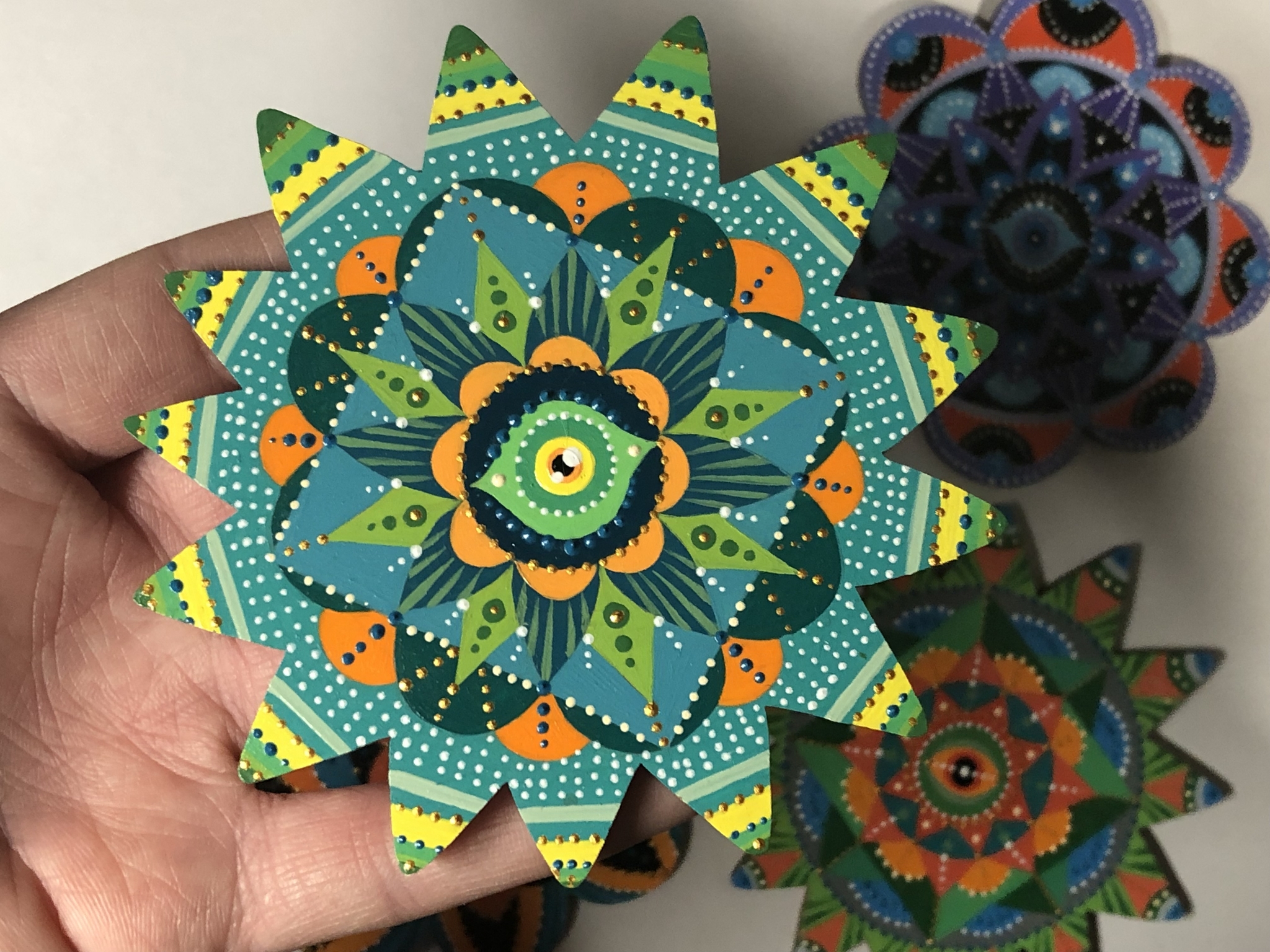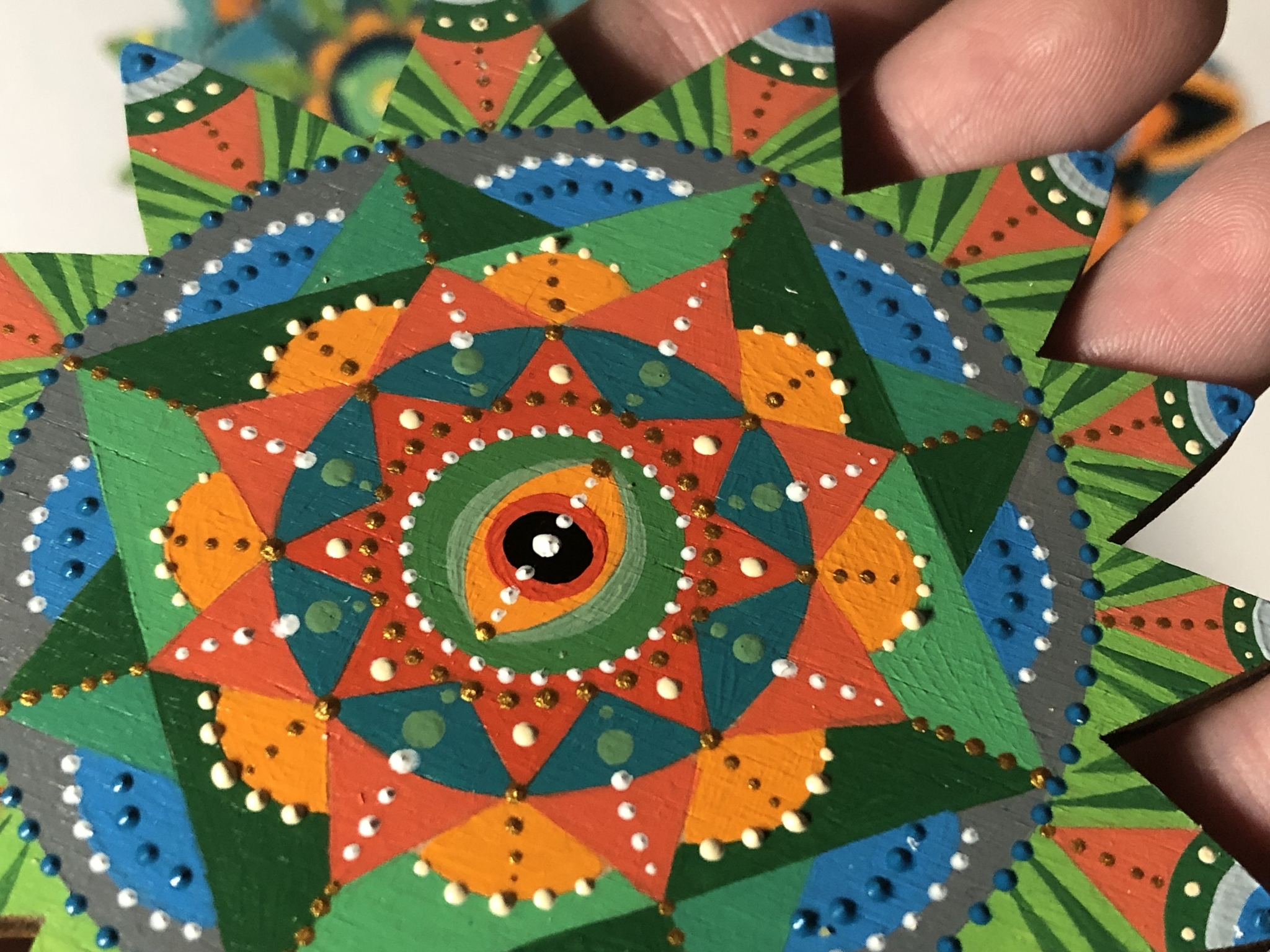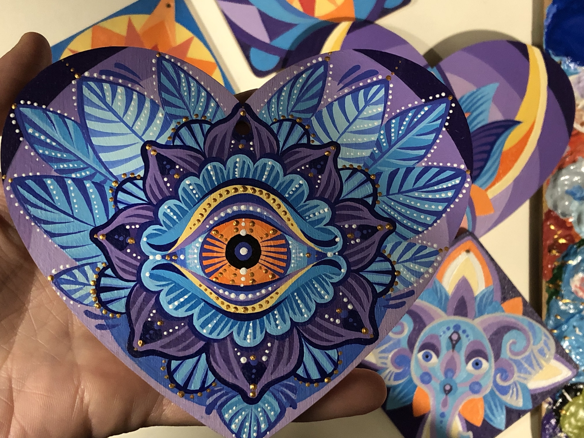 Расписаны акрилом, украшены акриловыми контурами, покрыты лаком.