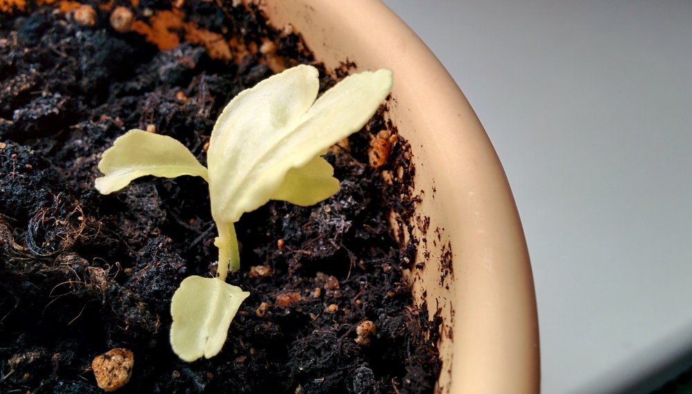 Я пока в отпуске был он вылез, когда на работу пришел думал просто один завял, а он ползет потихоньку. Я погуглил и судя по картинкам такие случаи уже бывали. Альбиноса 2 рядом, один меньше другой больше. А так не страшно, пусть растет себе :)