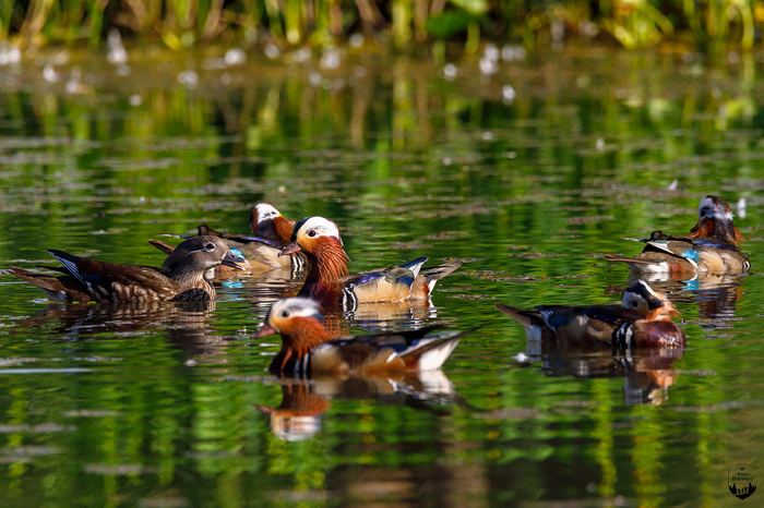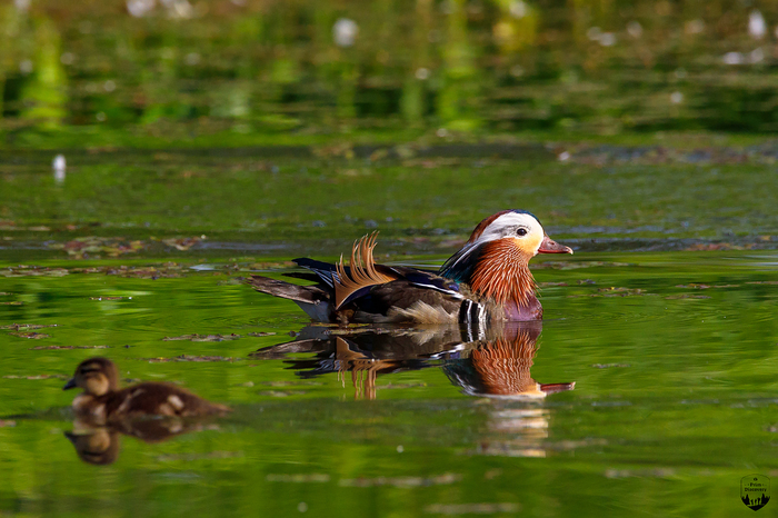 Утки-мандаринки обзавелись потомством и вовсю обучают их нелегкому птичьему делу.