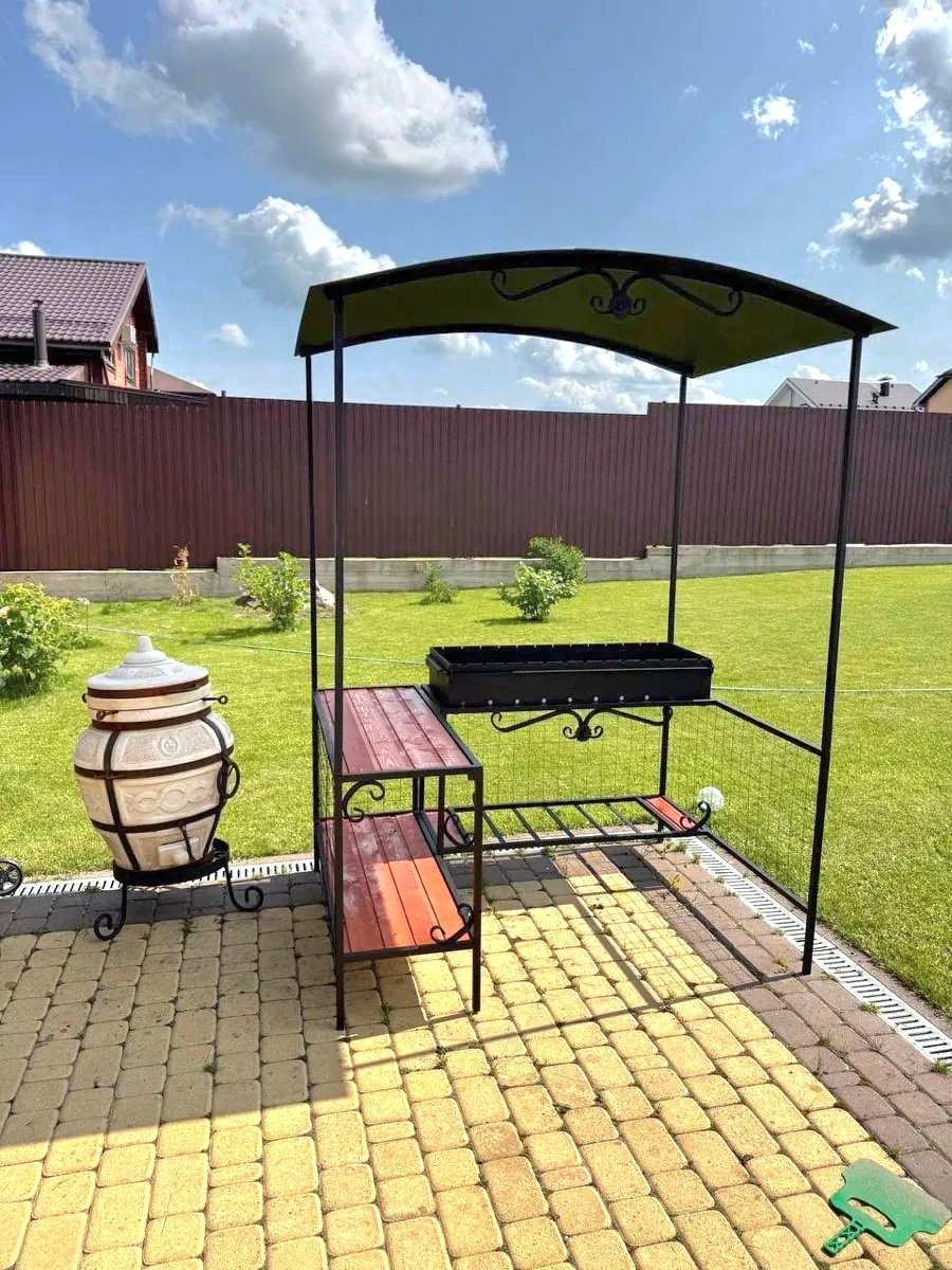 ✅ В комплекте: основание под мангал, съёмная жаровня, боковой стол, стойки крыши 4 шт, крыша,