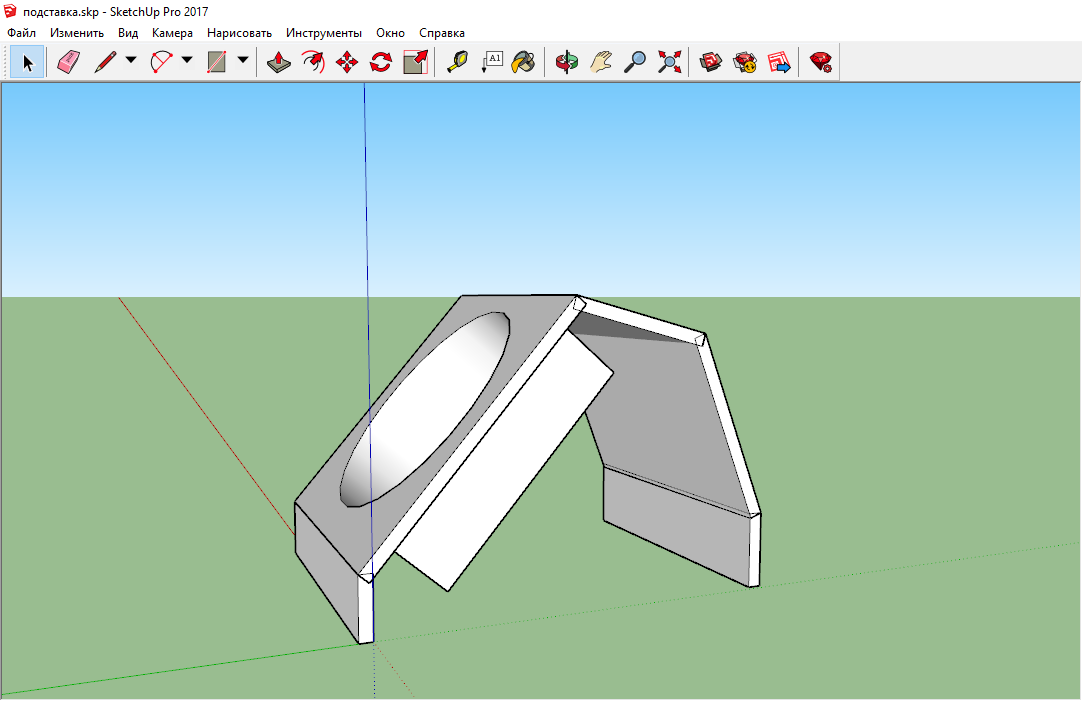 В этот раз уделил больше время проектированию. Для начала создал модель будущей подставки в программе SketchUp, она хоть и предназначена для совсем других целей, но мне в ней показалось удобнее, да и опыт небольшой есть.