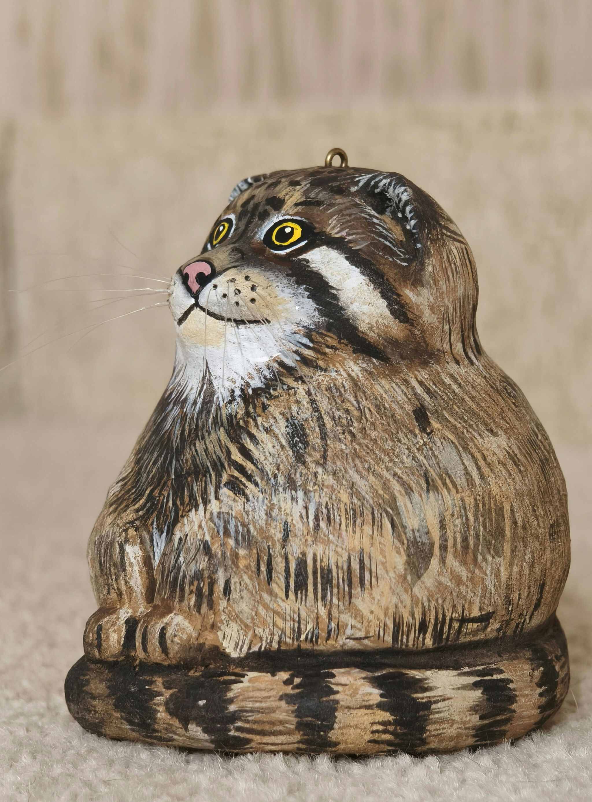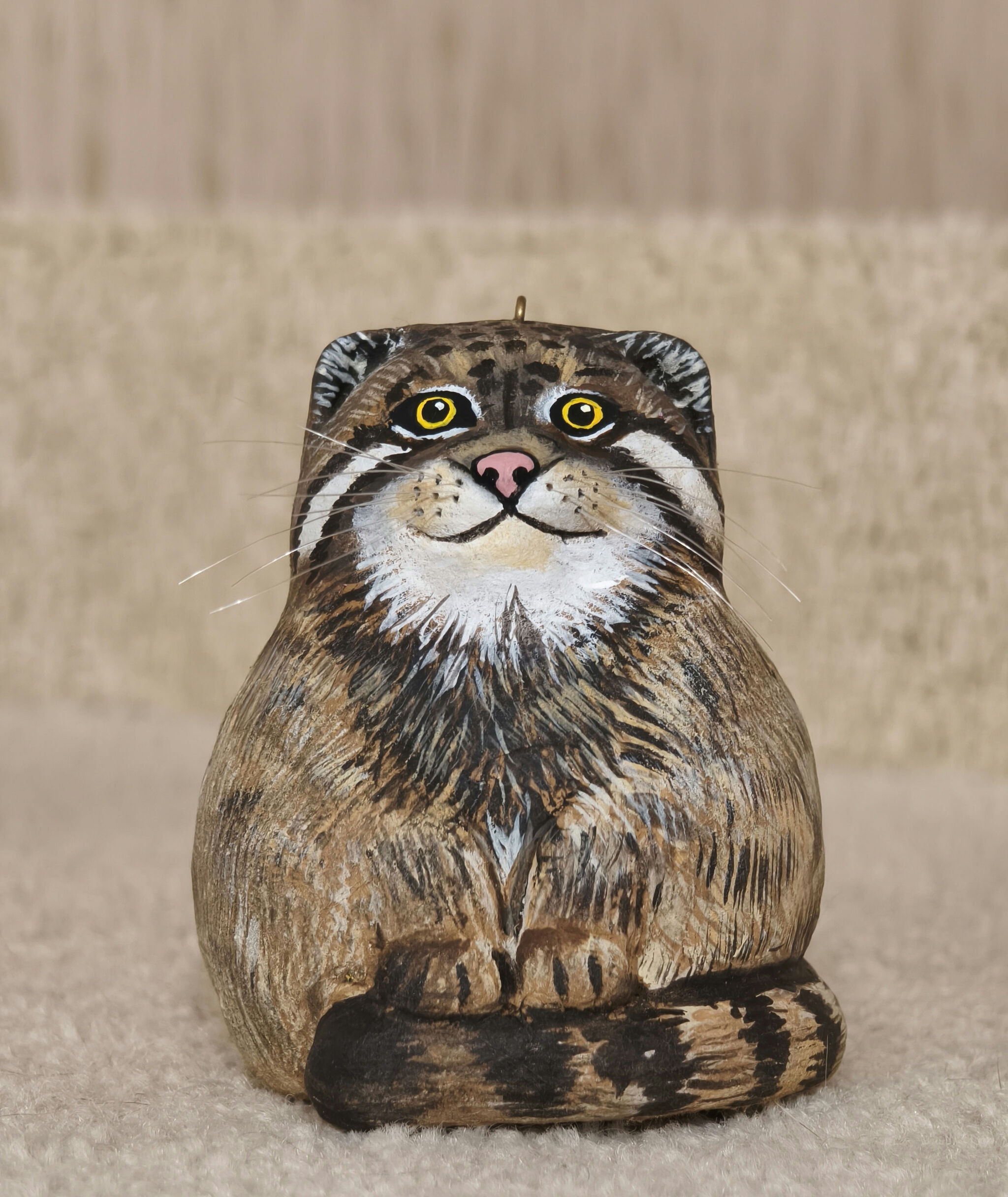Нужна была игрушка на елку, прототип - манул Зеленогорск. Главное условие - узнаваемый образ, то есть вот именно так лапки на хвостик.