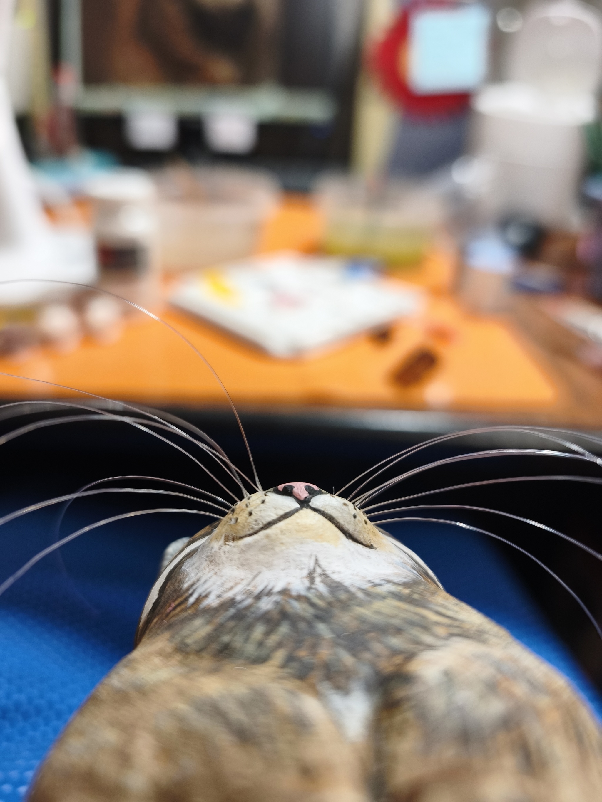 Чуток упростила себе работу, потому что делать это все "единичной" кисточкой - многие часы, я делала веерной кистью по всей тушке. А вот с мордахой номер не прошел, пришлось пыхтеть обычной, периодически глядя на исходник. Я уже не тот орел, что раньше, намучилась в таком масштабе ровные линии выводить, да и кисти уже хреноватые. Но таки я опять добилась.