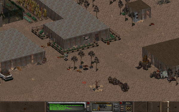Пошарахавшись туда-сюда, понасобирал ещё немного припасов и патронов к дробовику. Заглянул в, собственно, убежище, убил там ещё пару граждан. Что-то снова стало скучно, пойду-ка в другой город. Кстати, вон Гекко, совсем недалеко отсюда...