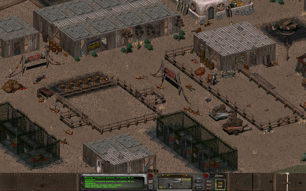 После Дыры я направился в Город Убежища, заскочив по пути в Модок. Довольно скучное место, наверное единственное, за что цепляется внимание - "курочка", в огороженном сарае с заваленным входом.