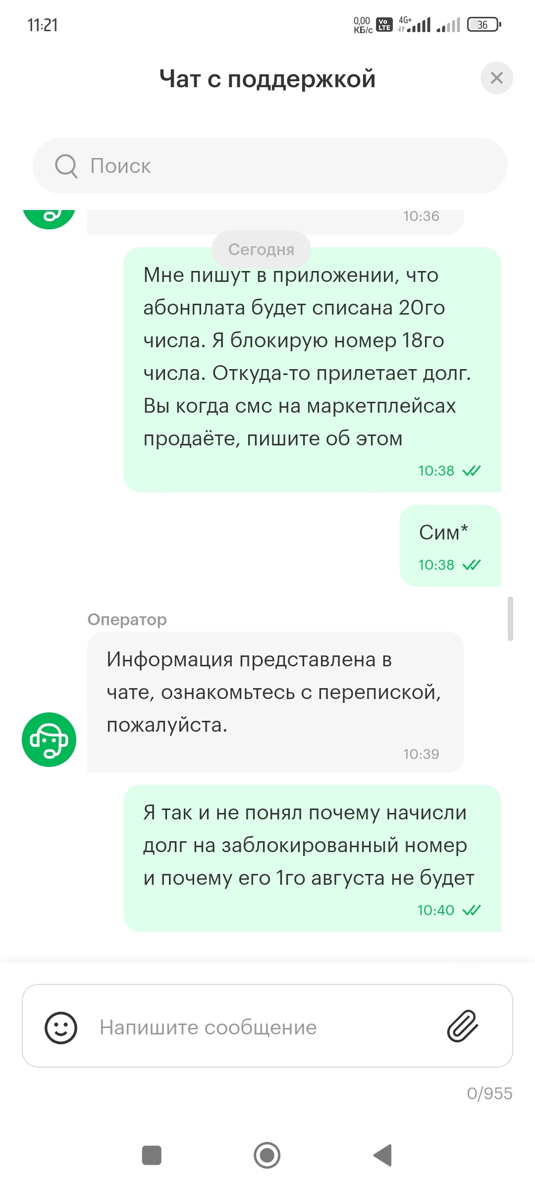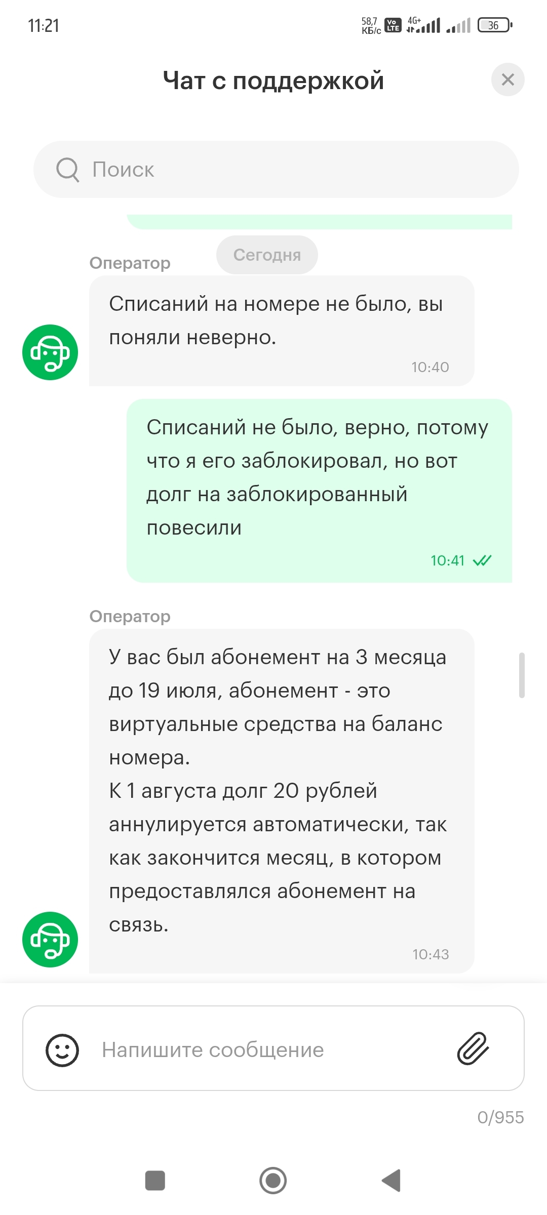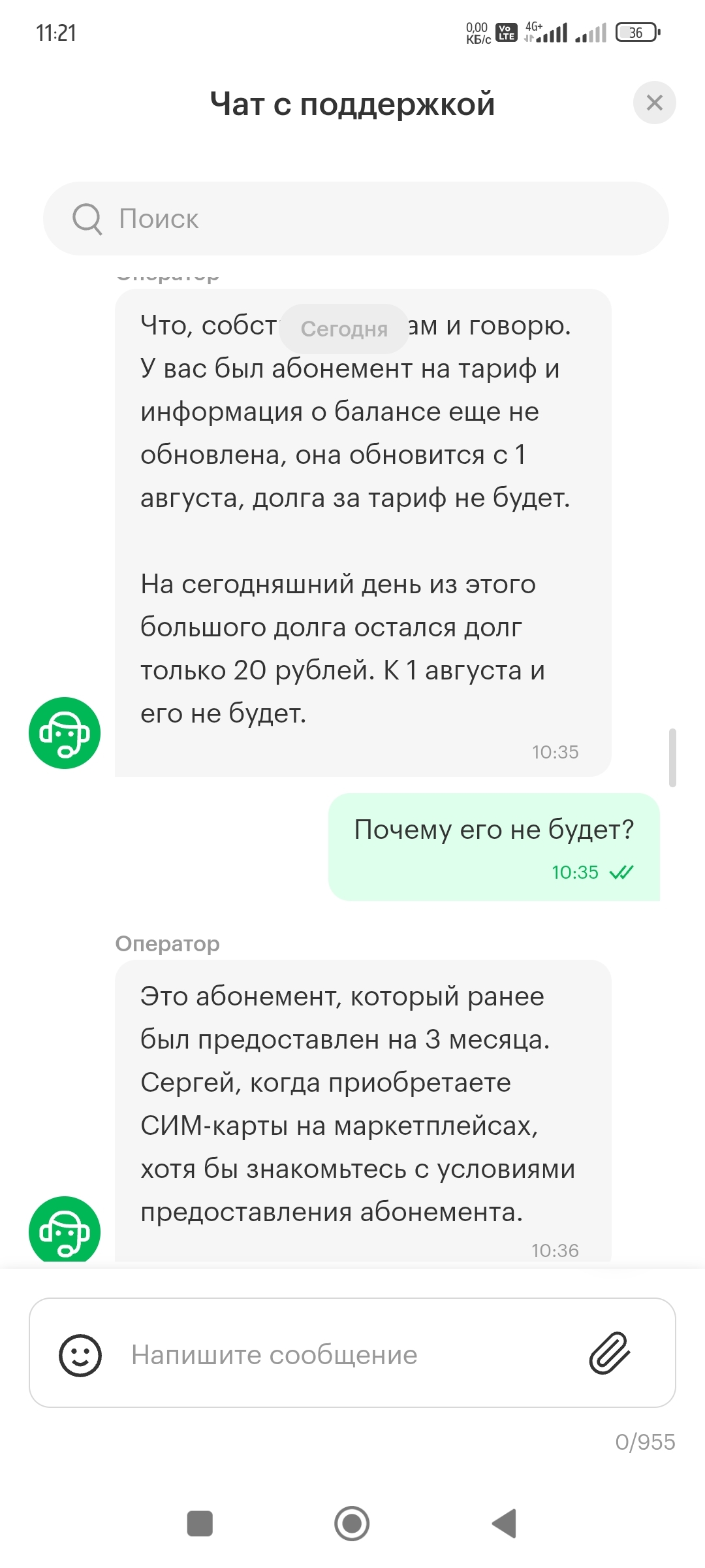 В общем долг спишется 1 августа, тогда и приходите, но будет новый долг. Удобно. "Всё для людей". Этот долг за оплаченный абонемент, который бесплатный на три месяца. У вас ничего не списали, но долг есть. Я лично ничего не понял. Откуда долг, почему он спишется и почему нельзя заблокировать сейчас, если он всё-равно спишется. В добавок ещё и хамоватый оператор, который намекает что ты тупой и недоволен тем, что сим куплена на маркетплейсе.