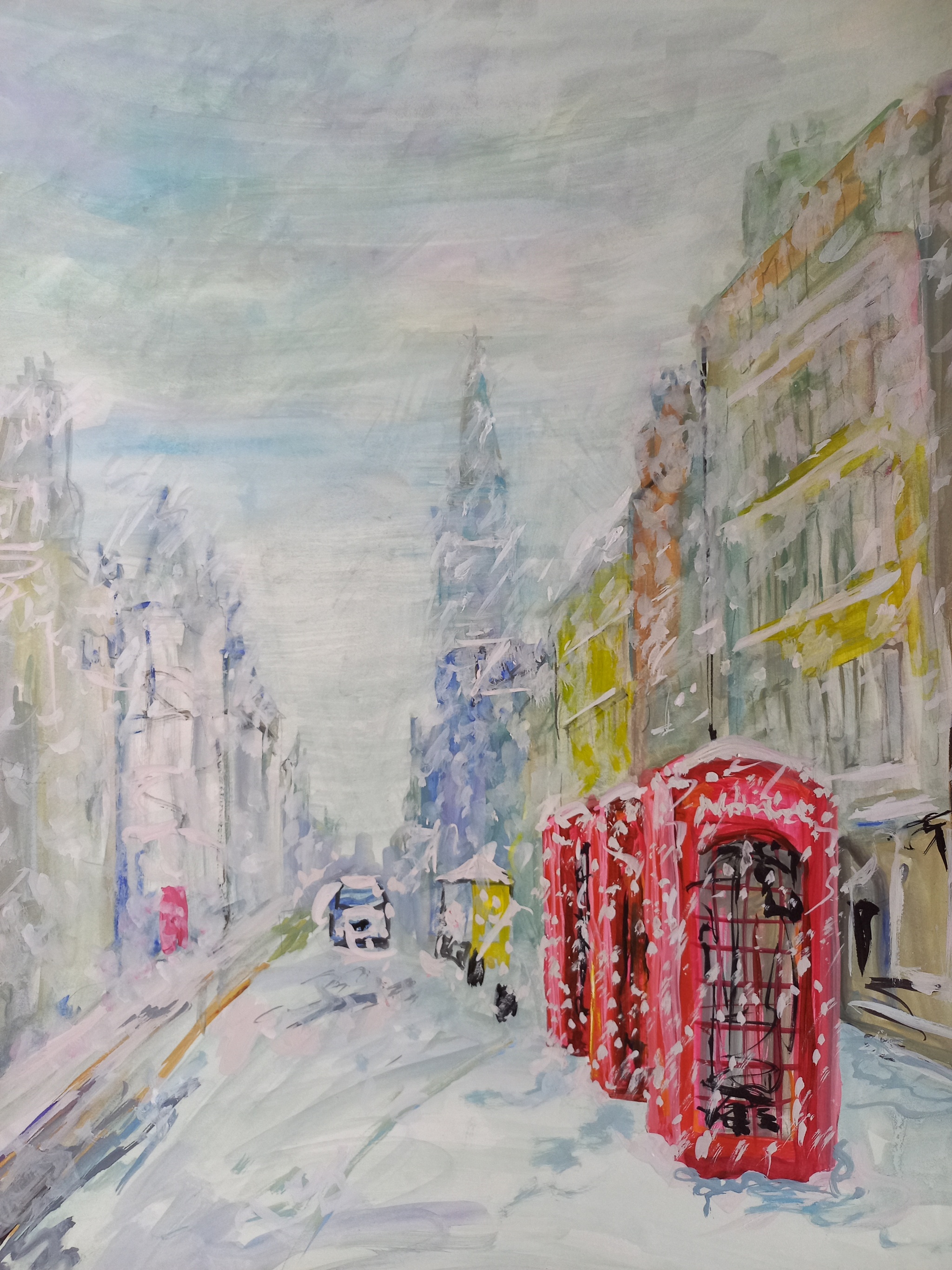 1 MargoMakarovaart Маргарита Макарова. Лондон. Акварель 2 года назад [моё] Арт Современное искусство Лондон Акварель Пейзаж Традиционный арт Город Красный Телефонная будка Англия Ещё 0