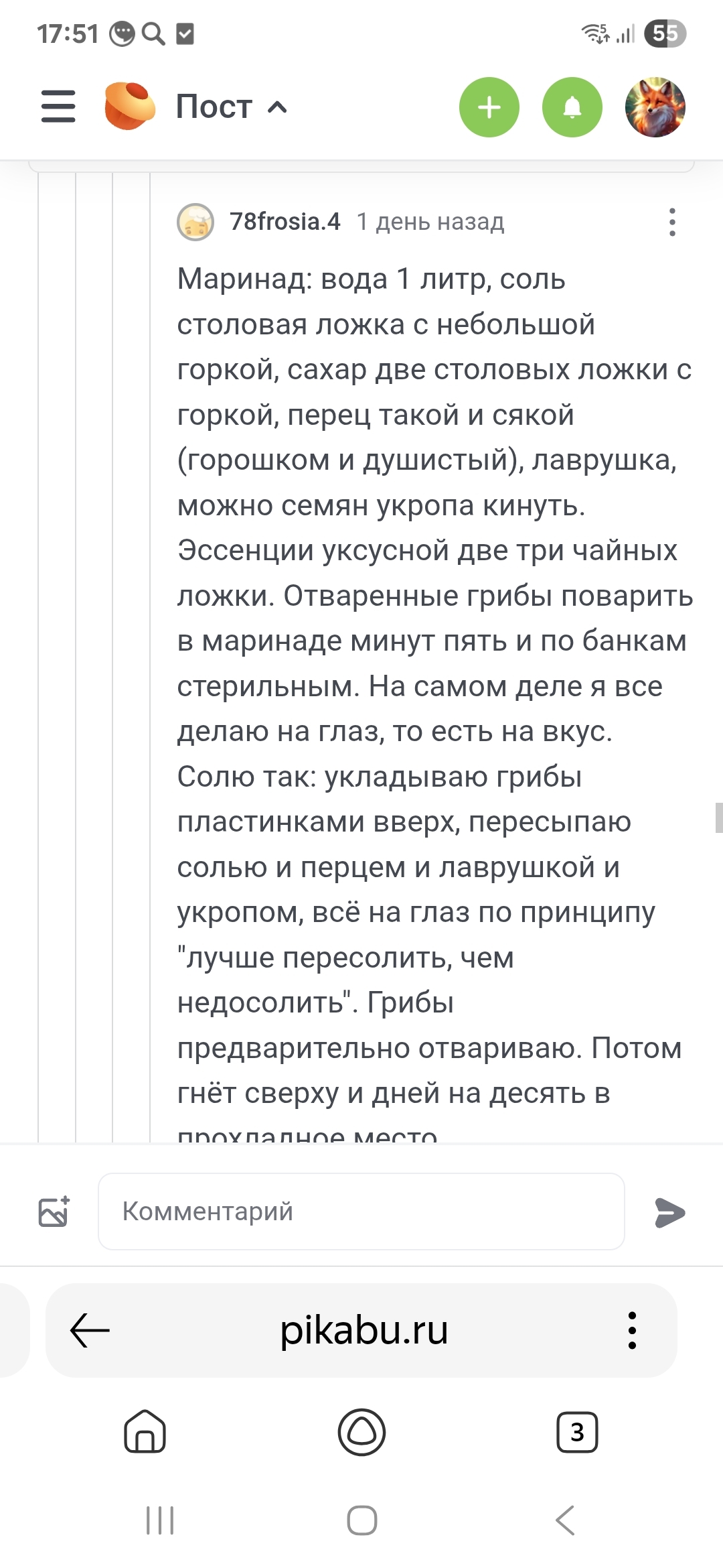Я понимаю, что все нормальные хозяйки сезон заготовок уже закончили. Но мне тут Бог послал грибочков, а https://pikabu.ru/@78frosia.4, подсказала рецептик. Мариновала первый раз в жизни. Возможно, где-то нарушила технологию - недокрутила крышки или ещё что. Но поскольку на лоджии сейчас холодно, есть шанс, что какое-то время продержатся. Лишь бы не задохнулись (такое бывает). И не знала, сколько семян укропа положить. Сыпанула чайную ложку на 2 л маринада, поняла, что явно много. Половину выловила😅. Когда стала вторую порцию маринада готовить, эти бэушные туда добавила.