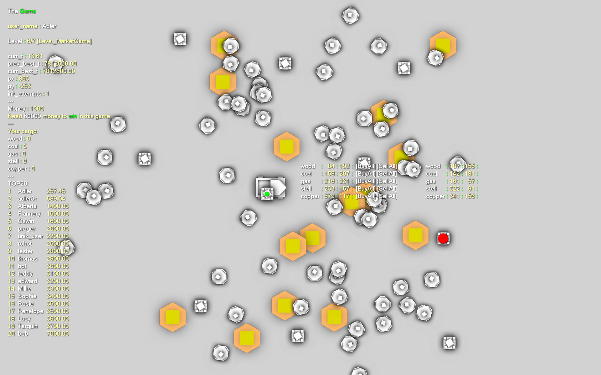 Сделал простую игру про торговлю. Всего один тип уровней. Есть онлайн таблица рекордов, тоесть можно соревноваться с другими игроками. Попробуйте обогнать например меня.