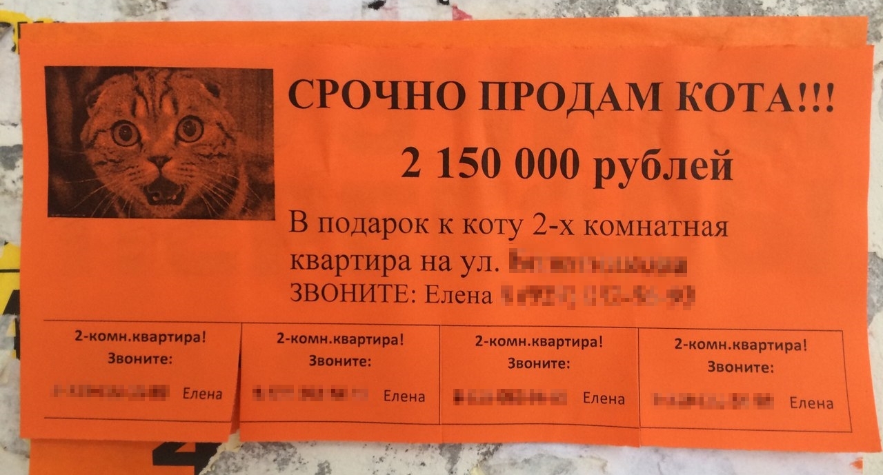 13 Darth13Vader Юмор Маркетинг: уровень Елена 9 лет назад [моё] Забавное Россия Юмор Объявление Кот