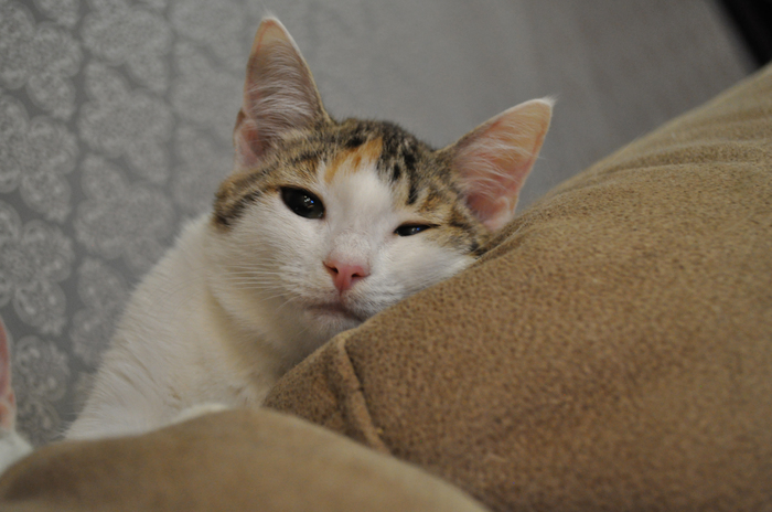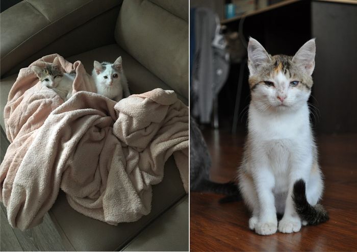 Не смотря на то, что у Марлы, в отличие от двух других котят (остались слепыми), второй глаз был здоровым и она смогла бы выжить на улице, её все равно решили принять в приют. Котята долго адаптировались и лечились, в том числе и от грибка, поэтому и застряли у нас надолго.