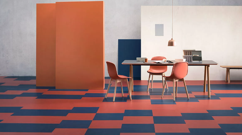 Плиточный мармолеум представляет собой отдельные квадратные модули стандартного размера - 50 или 30 см. Они фиксируются на клей. Стоимость плиточного мармолеума начинается от 2000 рублей за квадратный метр.
