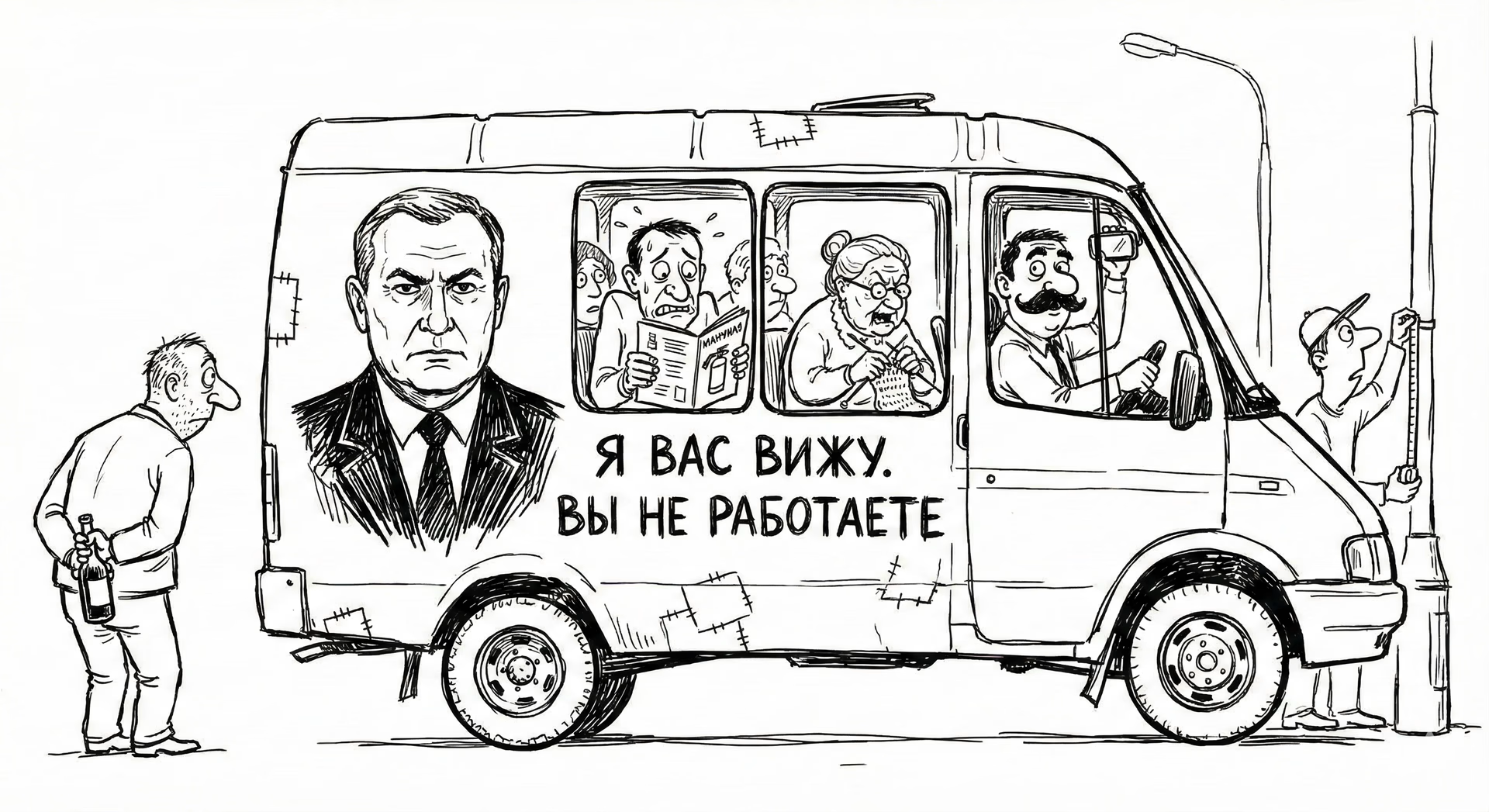 Все началось с ржавчины. Правый борт прогнил так, что сквозь дыру пассажиры могли трогать асфальт. Хозяин автопарка, Ашот, решил проблему политически грамотно. Вместо сварки он купил наклейку. Огромную.