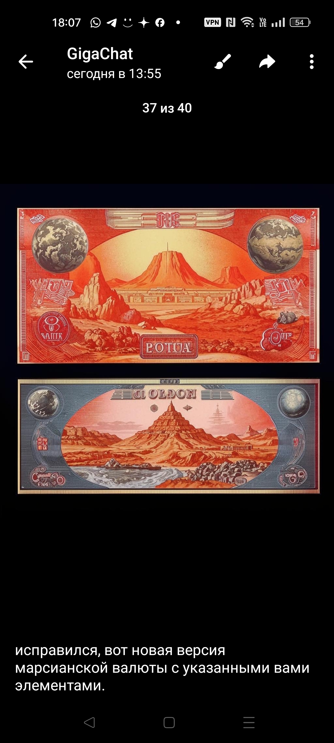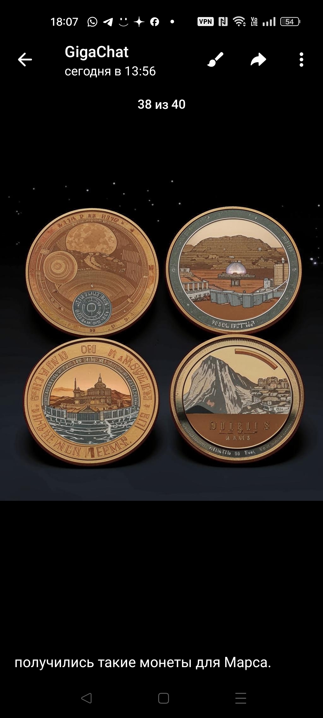 0 user7496770 Марсианские деньги 7 месяцев назад Задал сегодня вопрос ИИ , как бы по его мнению выглядели марсианские деньги, и вот: [моё] Марсиане Деньги Искусственный интеллект Длиннопост Ещё 0