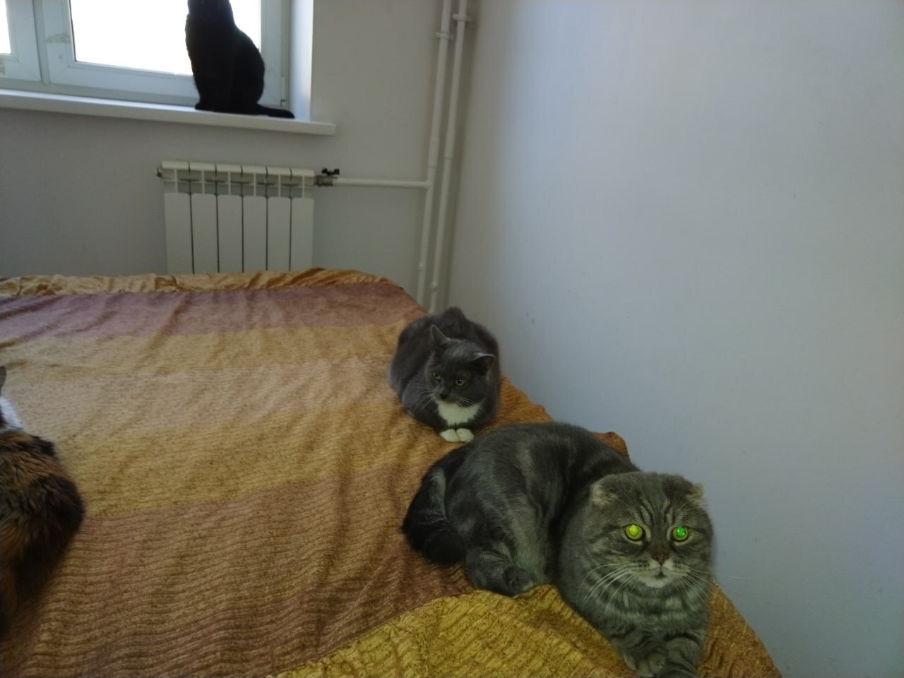 Вот кстати фото Машки, когда она только заехала на передержку. Она тогда сразу прилегла поближе к Фырчу. Похоже у Машеньки слабость к вислоухим шотландцам.