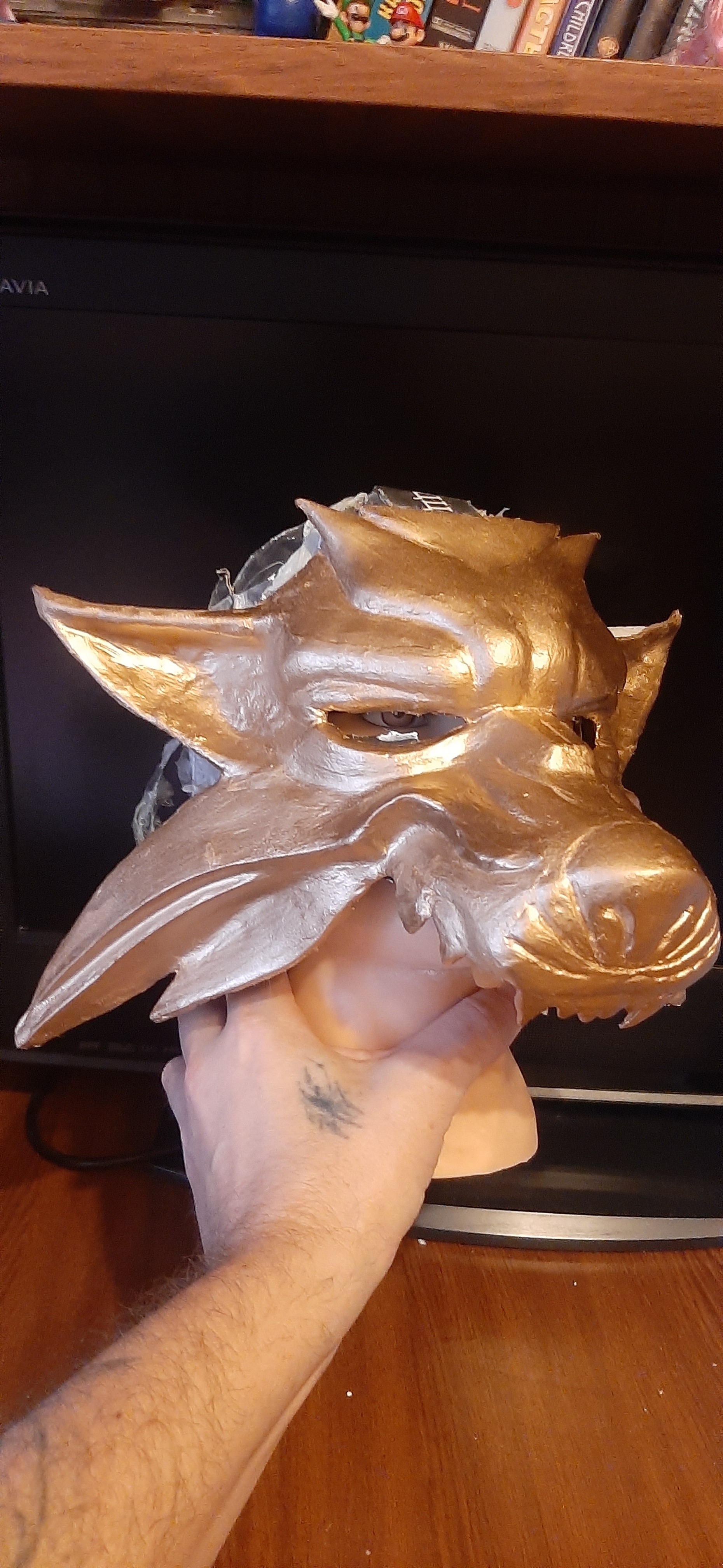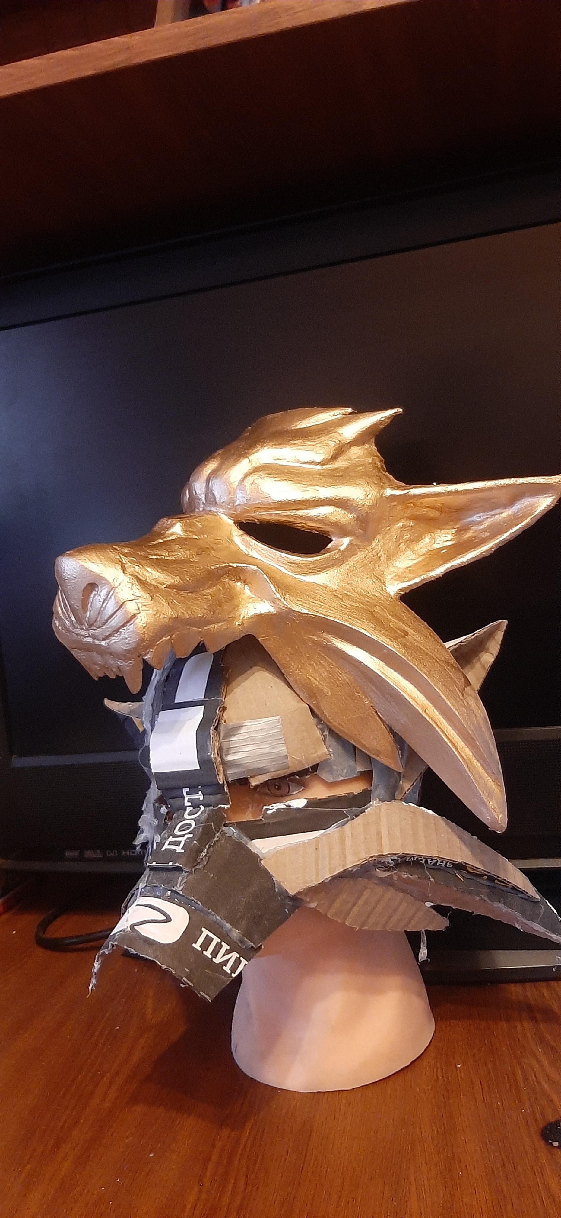 Здравствуйте уважаемые Пикабушники и мои немногочисленные подписчики! После маски зайца, я решил, что так как уже есть лиса и заяц, логично будет сделать маску волка. Долго искал подходящий для этого образ, пока не установил себе на дохленький комп Ведьмак 3, на минимальных настройках идёт даже неплохо. Сначала появилась идея сделать маску по образу медальона Школы Волка, пока я не начал задание в котором Геральд должен был явиться на бал-маскарад в костюме и маске, купил у нужного торговца необходимое, естественно выбрал маску Волка и, вот она идея для творчества! Технология изготовления по-прежнему та же, что и всегда: на Николае смастерил из картона, скотча и с помощью клеевого пистолета каркас чтобы сократить расход скульптурного пластилина