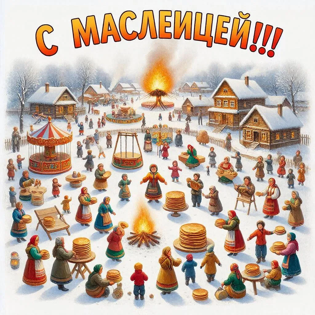 Решил тут открыточки поздравительные сделать в нейросети про масленицу. Разослать друзьям с поздравлениями. И вот что получается с простого промта "Картинка на тему масленицы с надписью: С Масленицей!!!"