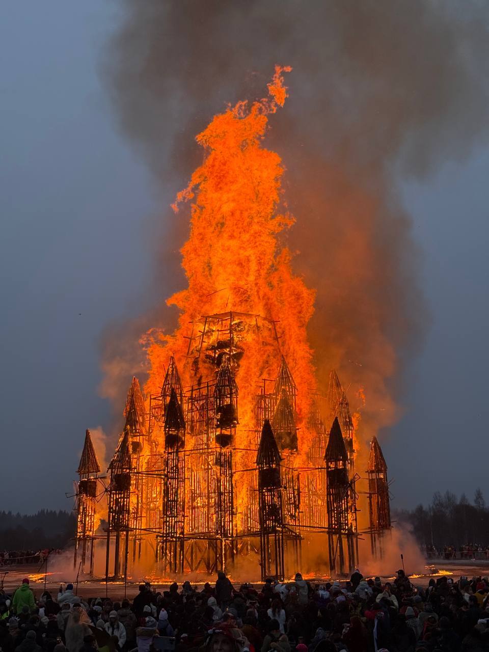 Мы только по приезду домой узнали о живом вокальном исполнении и загорелись желанием вернуться в следующем году. Костер, сопровождаемый вокалом, поражал и гипнотизировал. Высота мельницы достигала 26 метров, а пламя во время пика горения взметнулось на высоту более пятидесяти метров.