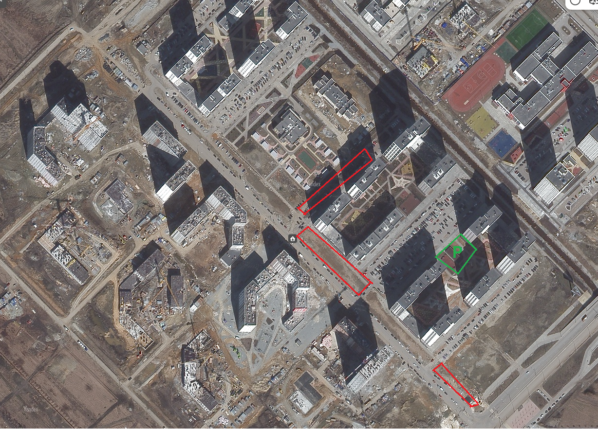 Красный - самовольная парковка, зеленый - подземный паркинг.
