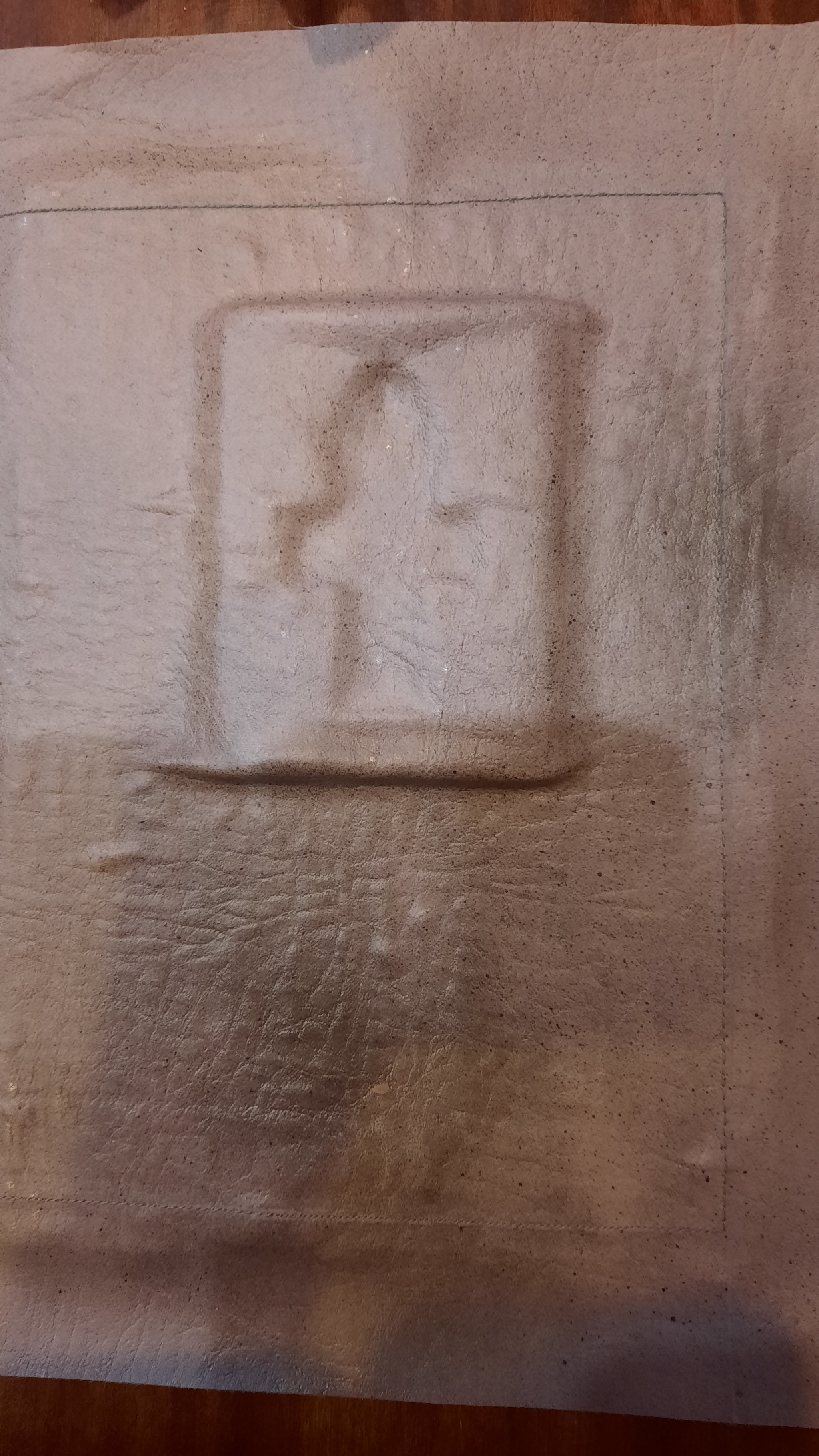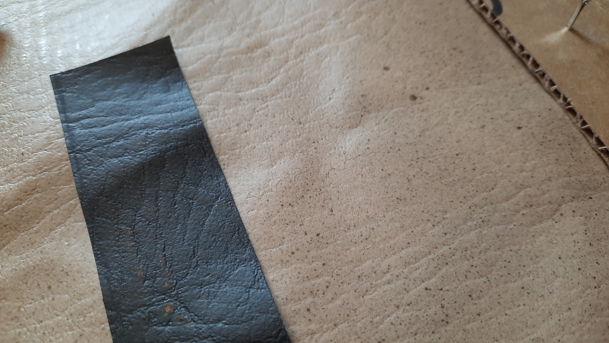 Для работы выбрали кож.зам. песочного цвета, отметила расположение картонок, сделала припуски по периметру 2,5-3 см.