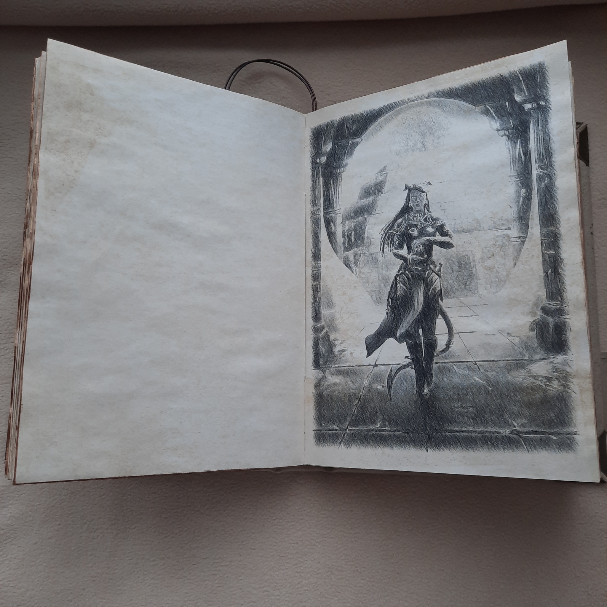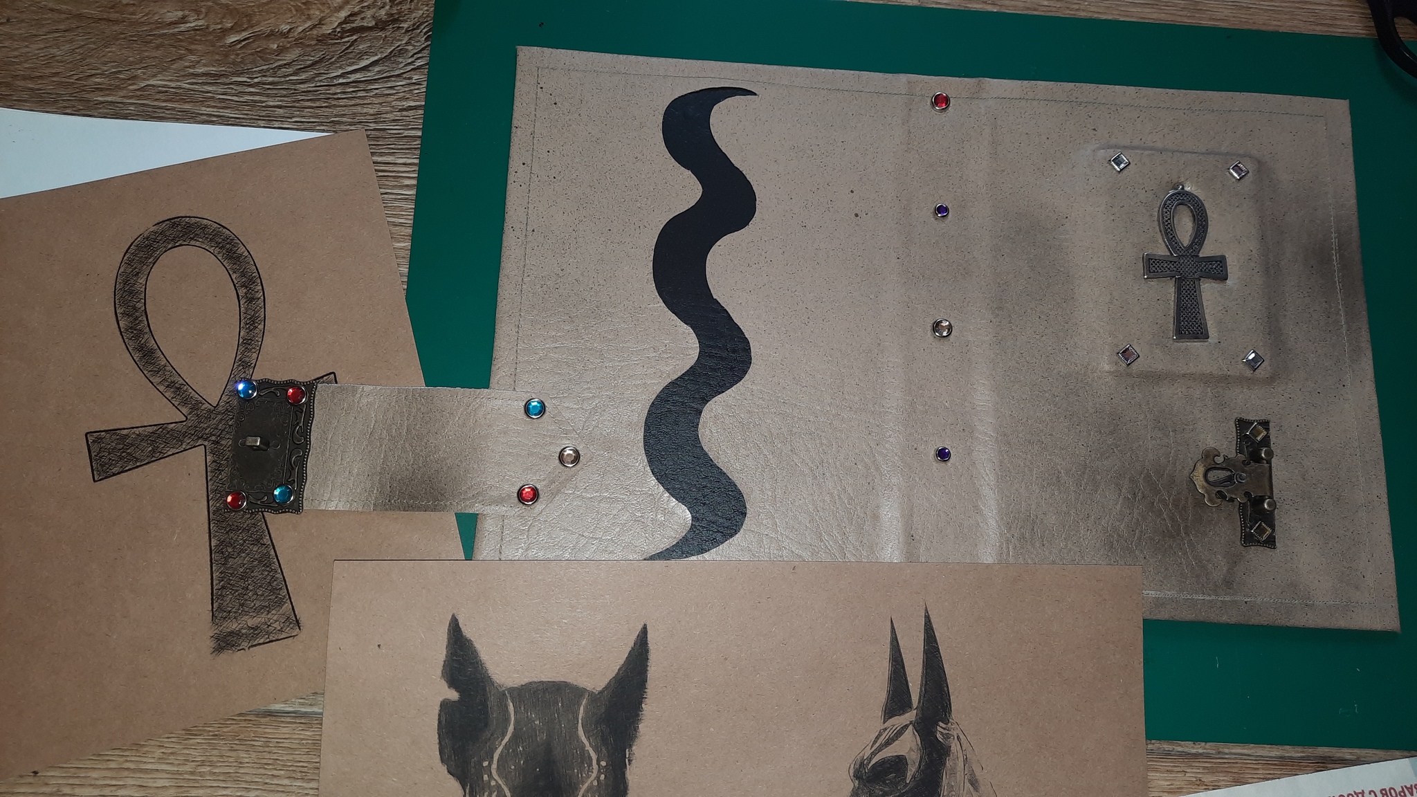 Мне поступил заказ сделать в подарок блокнот с иллюстрациями из художественного произведения автора кому и предполагалось его вручить. В произведении присутствовали египетские мотивы, поэтому было условие, чтобы и обложка отражала дух произведения.