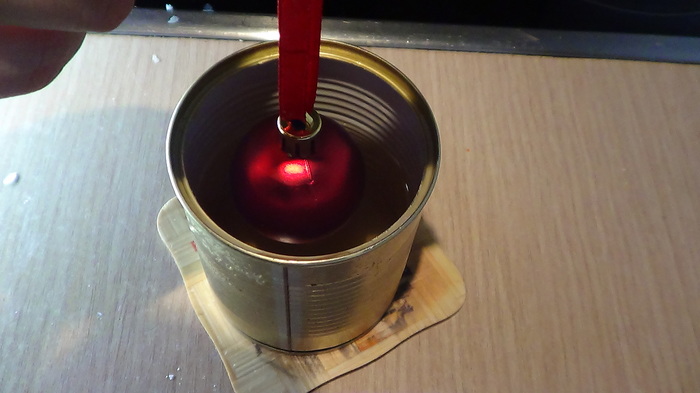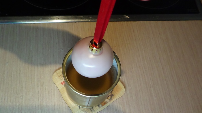 Когда уровень стал достаточным, приступаем к нанесению, просто окунаем шарик в воск.