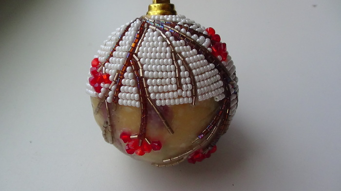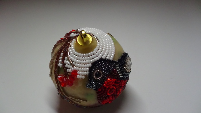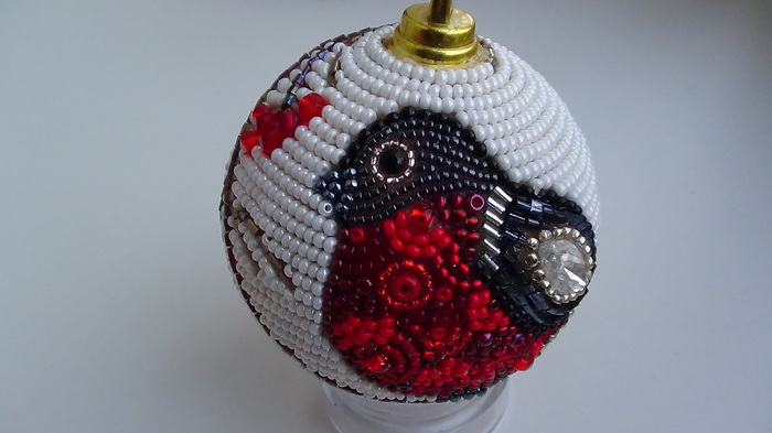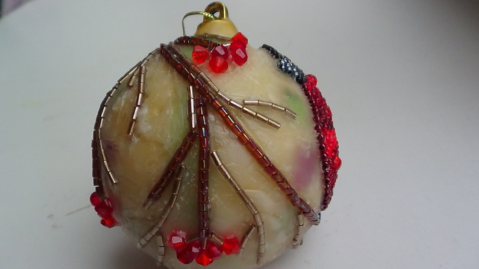 над мастер-классом по созданию елочной игрушки, украшенной бисером, "снегирь".