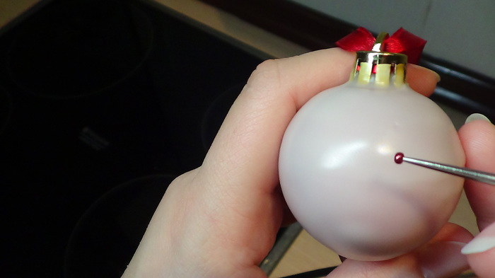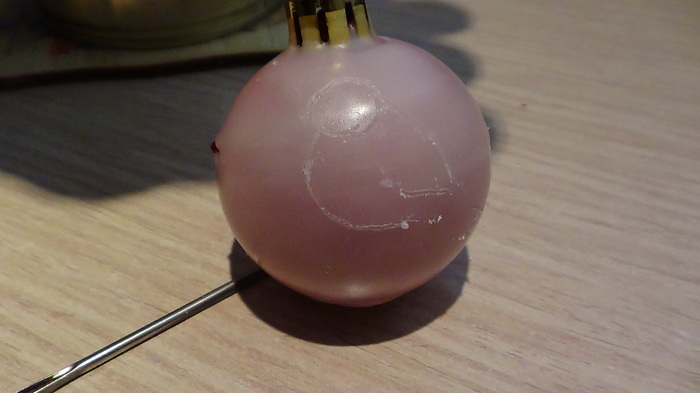 А теперь включайте фантазию и рисуйте на шарике, что Вам больше всего хочется от самых простых снежинок до "арабески", но у меня это будет снегирь.