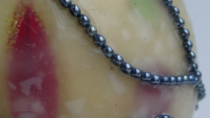 Чтобы понять, какой слой вам нужен, проверяем бисером, которым будете выкладывать шарик.