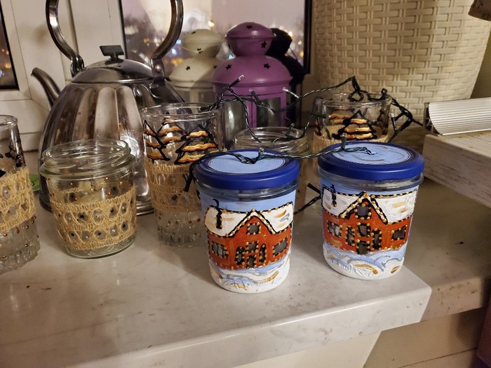 Дома скопилось приличное количество ёмкостей из-под варенья. Несколько банок с крышками и стаканы Михеев.