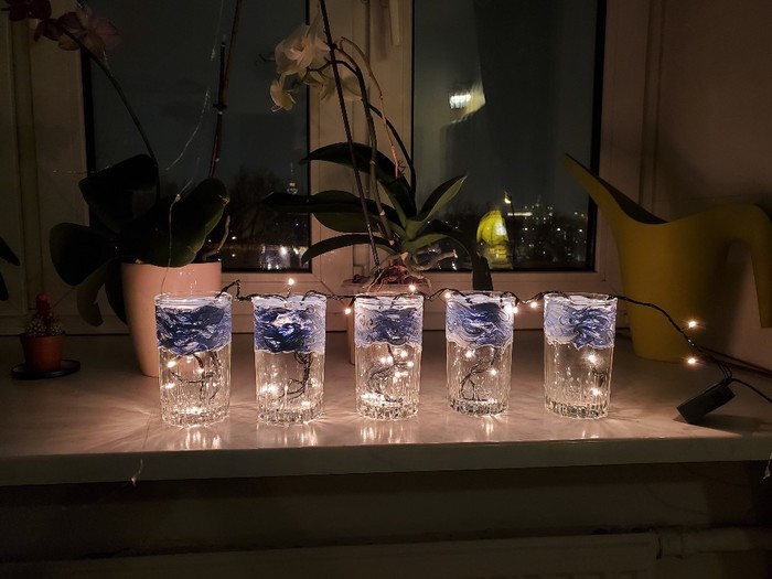 Что делать, когда остались стаканы и краска? Правильно, смастерить еще украшений!
