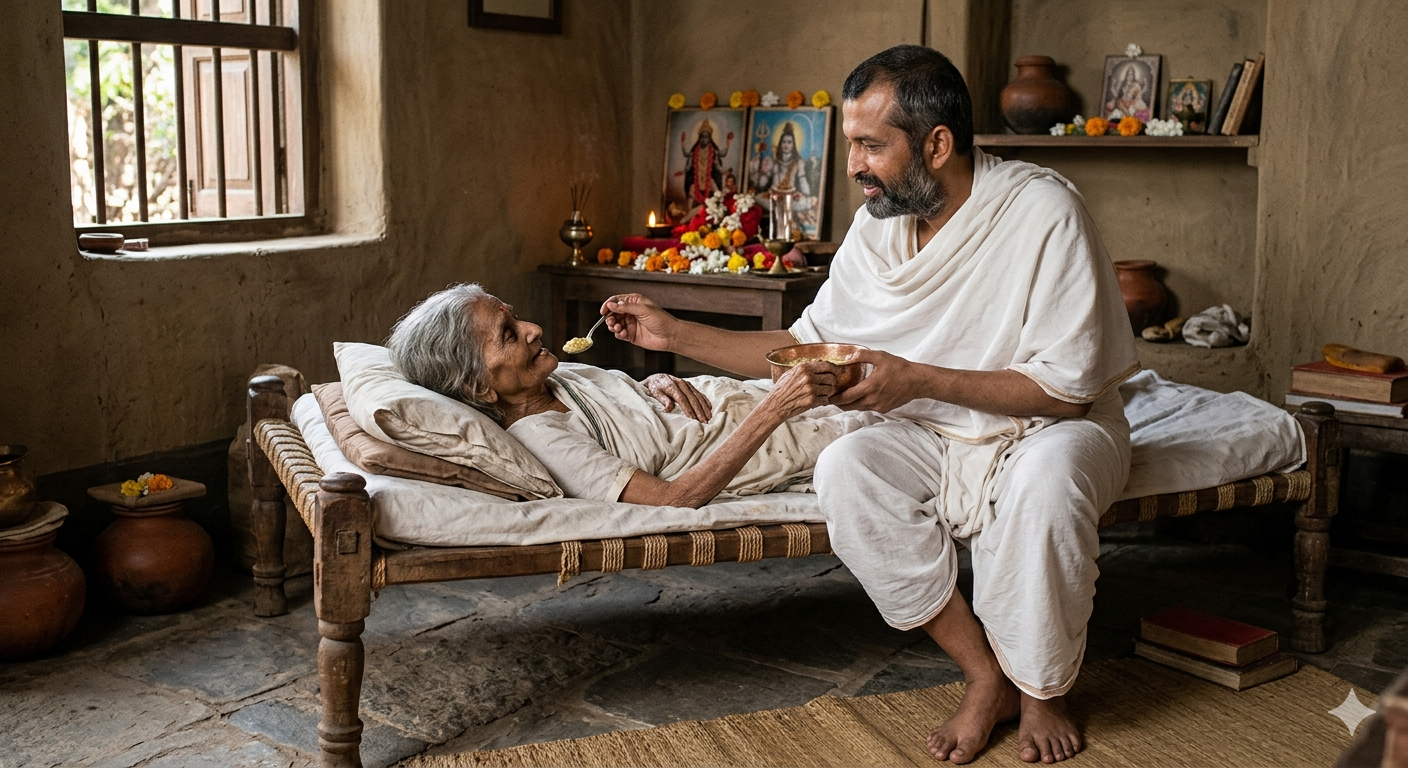 Он сказал это именно в тот период, когда сам был очень слаб, чтобы подчеркнуть: даже в болезни и страдании человек не должен забывать о своей родной матери. Это было одним из последних его сильных наставлений ученикам: «Не думайте, что духовность — только в храме или медитации. Начните с матери. Она — первая и величайшая форма Божественной Матери».