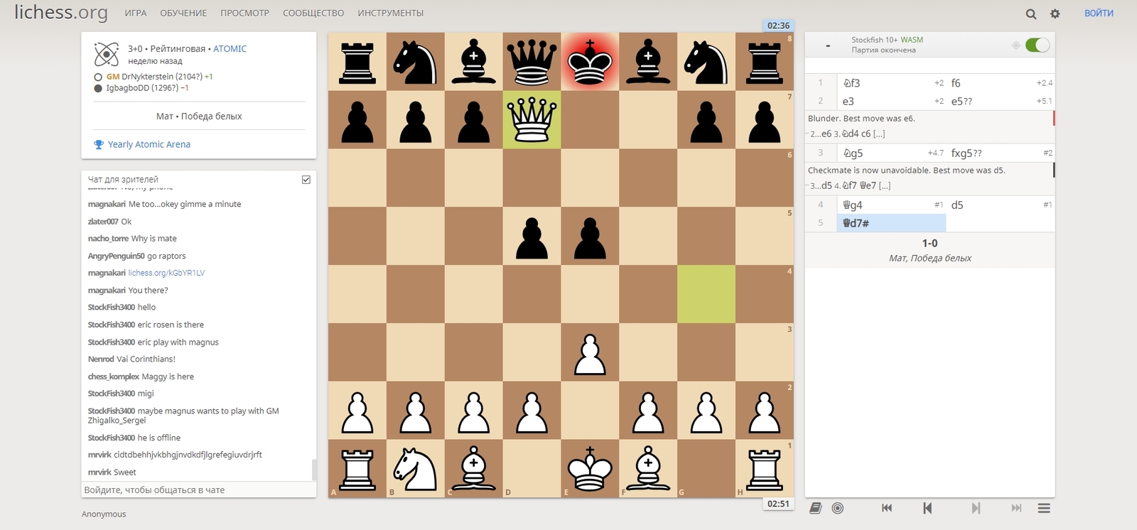 p. s. Всем спасибо. Игра в режиме Атомные шахматы.