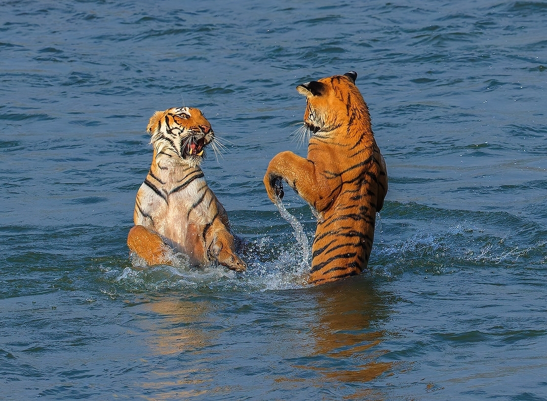 Мать с детёнышем играют в реке Рамганга