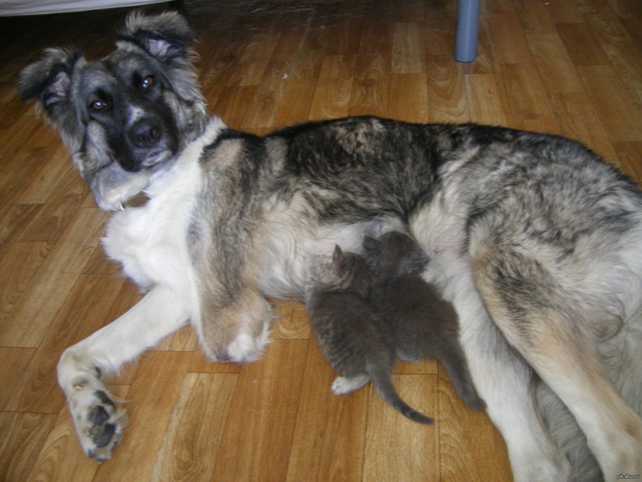 655 fnatic Животные Материнская любовь 12 лет назад мама этих котят умерла , и собака Тоня сумела заменить им мать [моё] Животные Кот Собака