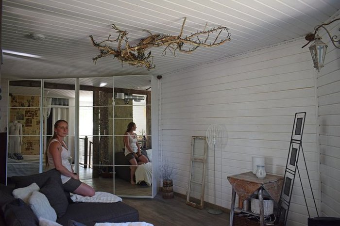 Внутренний дизайн помещений — также отпечаток руки Сирениус. Какие-то предметы она нашла на блошиных рынках, некоторые спасла из помойки, куда их отправили старые владельцы, многие были подарены. Обеденный стол она также сделала своими руками из дерева, росшего когда-то на ее участке.