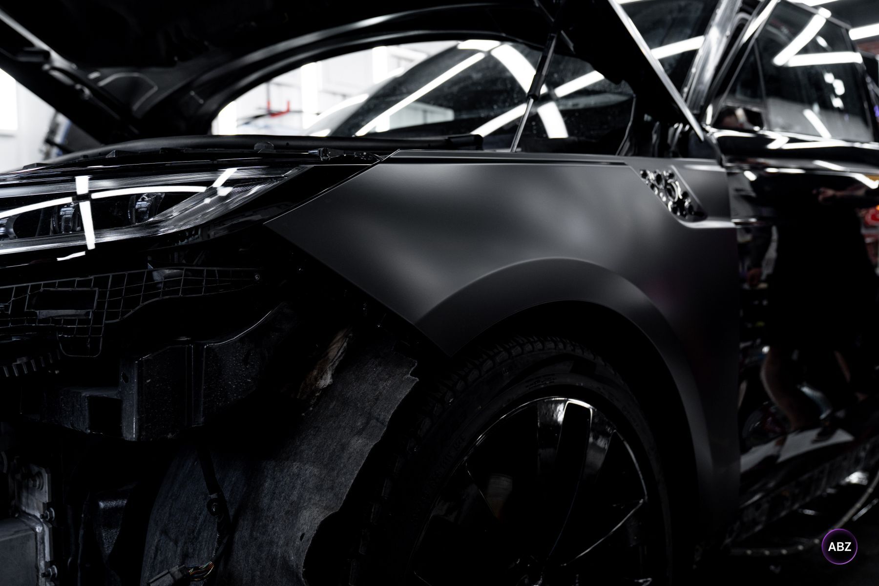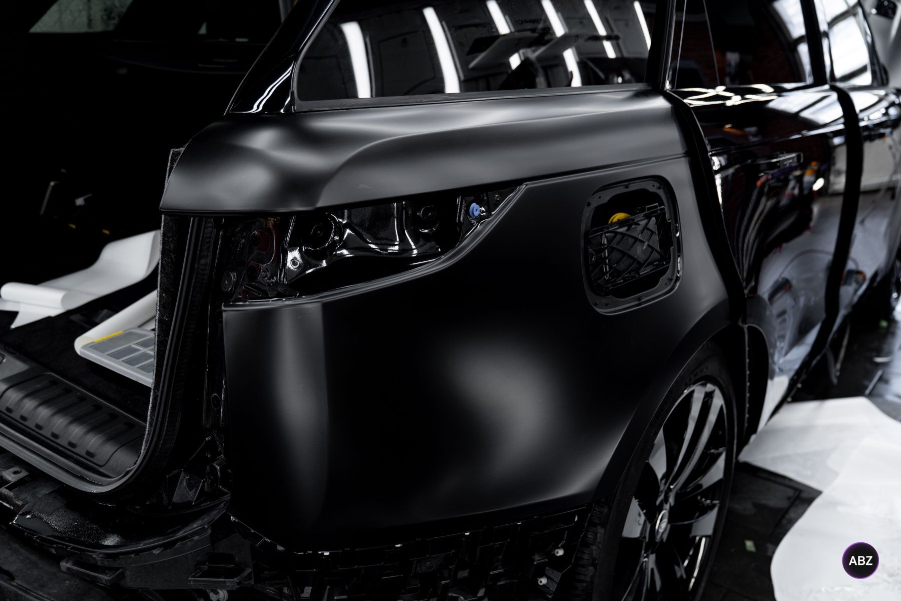 Бампер тоже был под подозрением — выровняли, подкрасили и закатали в тот же мат. Потому что Range Rover не должен выглядеть так, будто он «чуть поцарапан» — он должен выглядеть как «неприкасаемый».