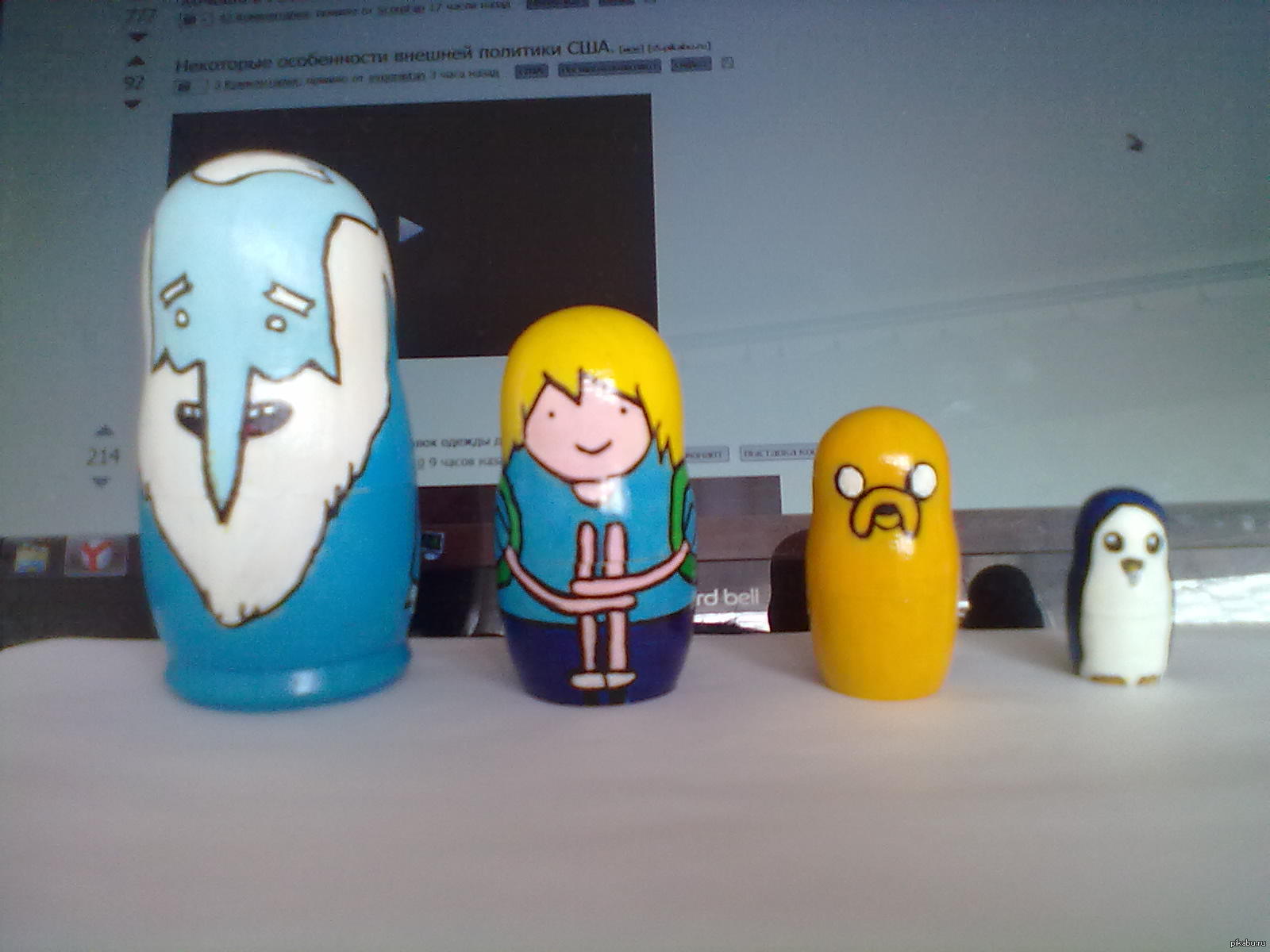 18 MaskimkaFrukt Матрешки в стиле Adventure time 11 лет назад Обещал выложить как сделаю) Косо и криво, первый опыт в подобном творчестве =) [моё] Моё Творчество Adventure Time