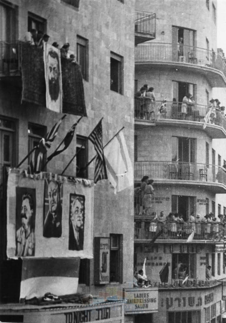 25 Limonana Май 1945 года, Иерусалим отмечает день победы 10 месяцев назад Сверху - Теодор Герцль, первый деятель сионизма, снизу - Сталин, Рузвельт и Черчилль. Израиль Евреи Иерусалим Палестина Историческое фото 9 мая - День Победы 3 2 1 Ещё 0