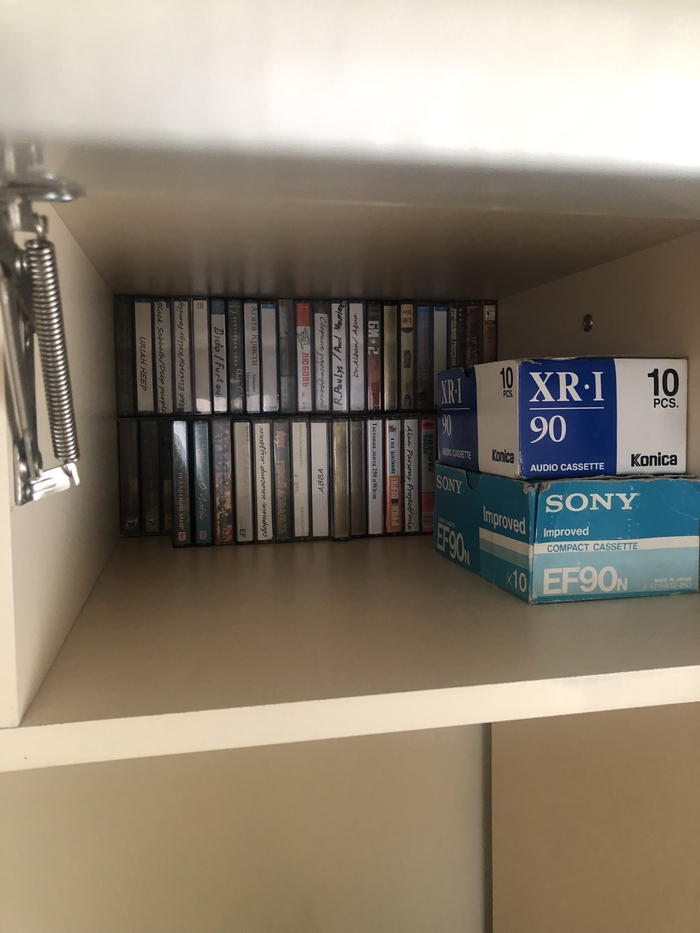Ну, и конечно, на резонный вопрос: «а каков практический смысл?» - фото моей фонотеки на компакт кассетах из моей юности (много было отправлено в утиль, остались либо т избранные:)